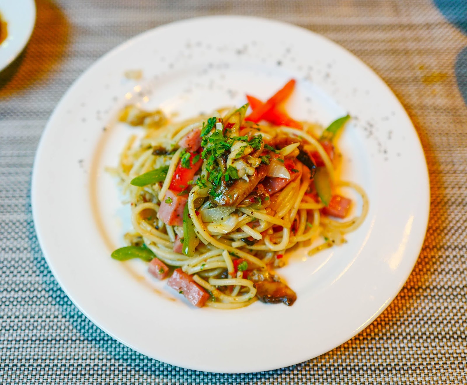 Noodle enthusiasts have a choice of West or East, from pasta in various preparations, such as aglio olio, to possibilities of the evening that might include Sarawak laksa or other Malaysian favourites. If you enjoy watching your food being cooked, there's plenty of action going on throughout the restaurant.