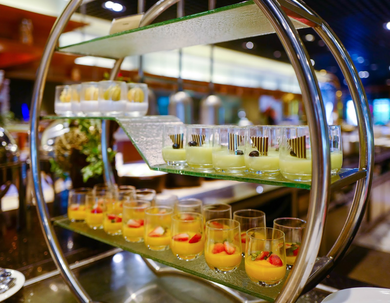Desserts could make up a meal on their own, so save space for cakes, fruits and a full-fledged chocolate fountain.
