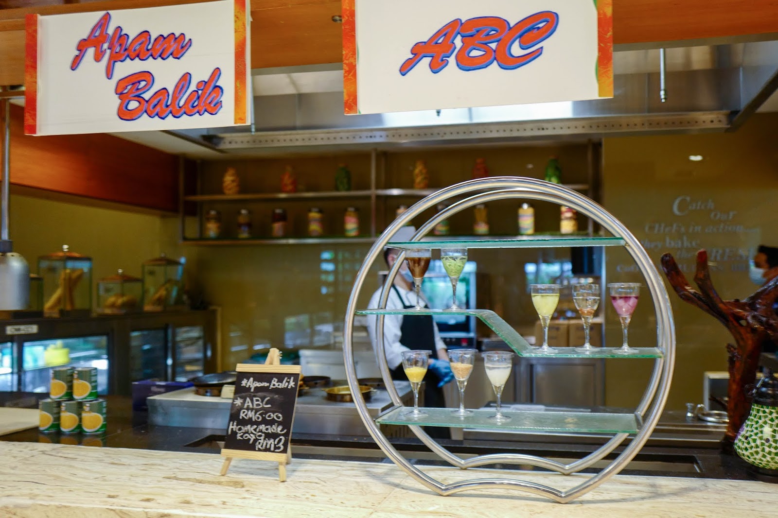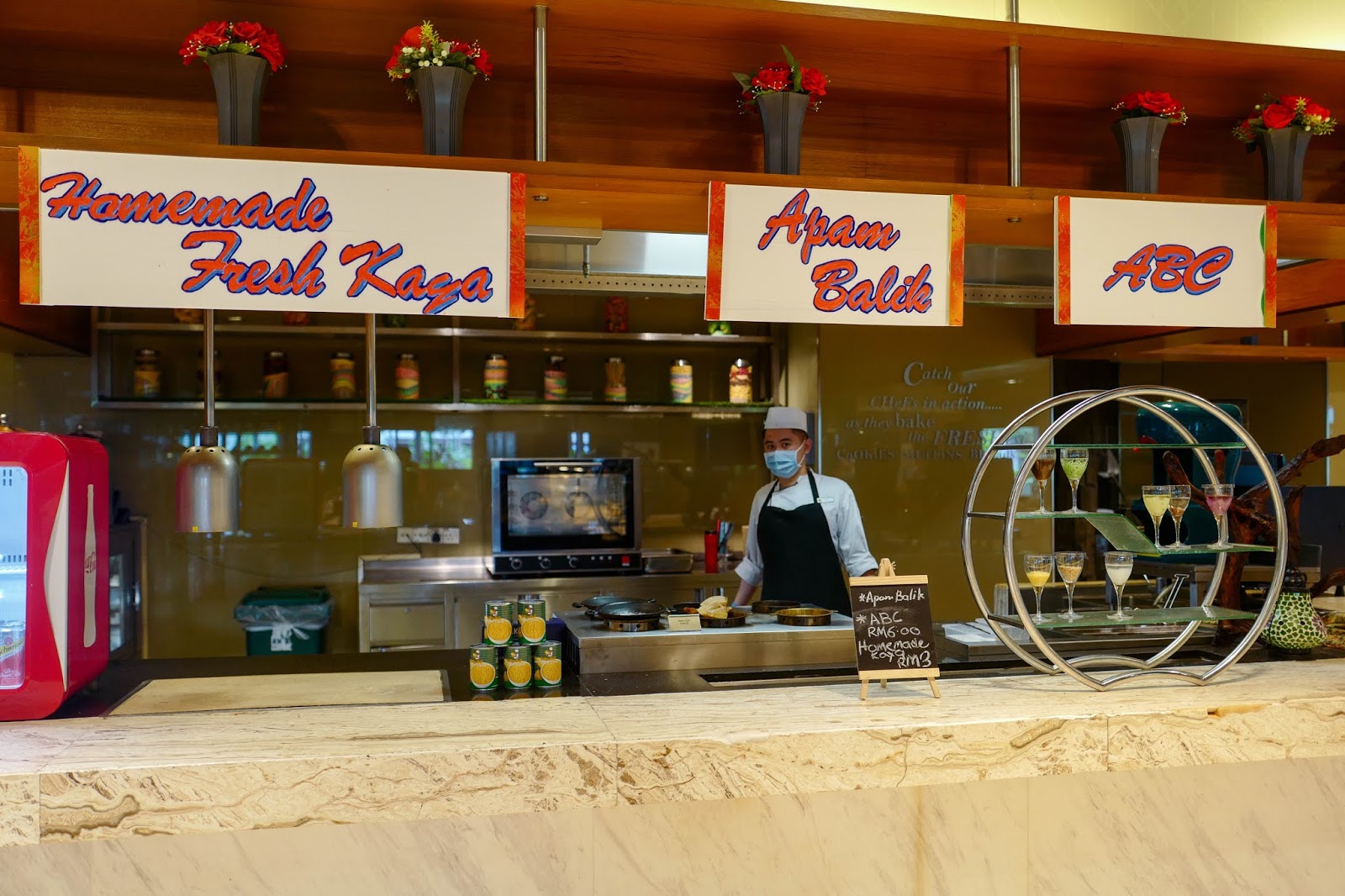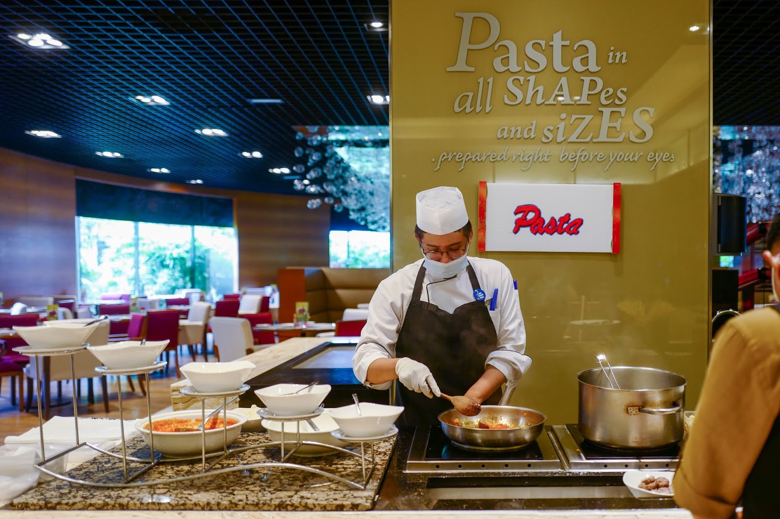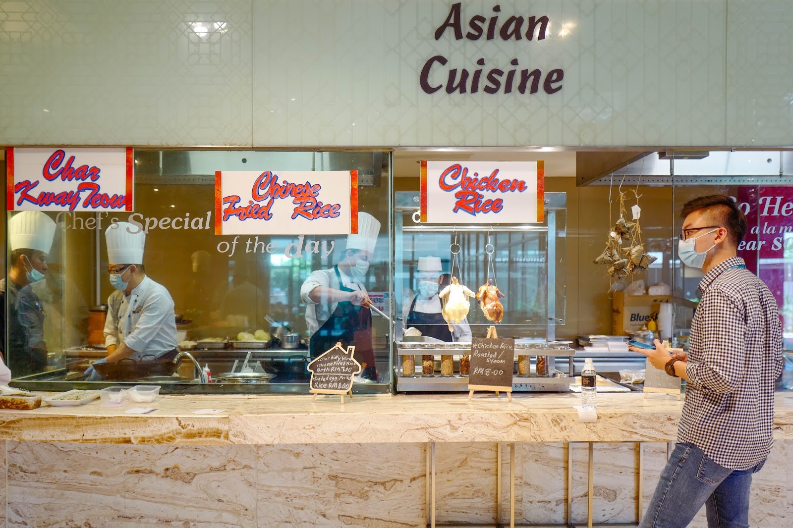 But with conventional buffets scuttled for now, hotels are experimenting with other efforts to keep their culinary talents working and entice meal-seeking customers. For One World Hotel, its coffeehouse's buffet cooking stations have been intriguingly repurposed, turned into takeaway counters for everything from chicken rice to char kuey teow, offered at reasonable prices for Bandar Utama's white-collar staffers.