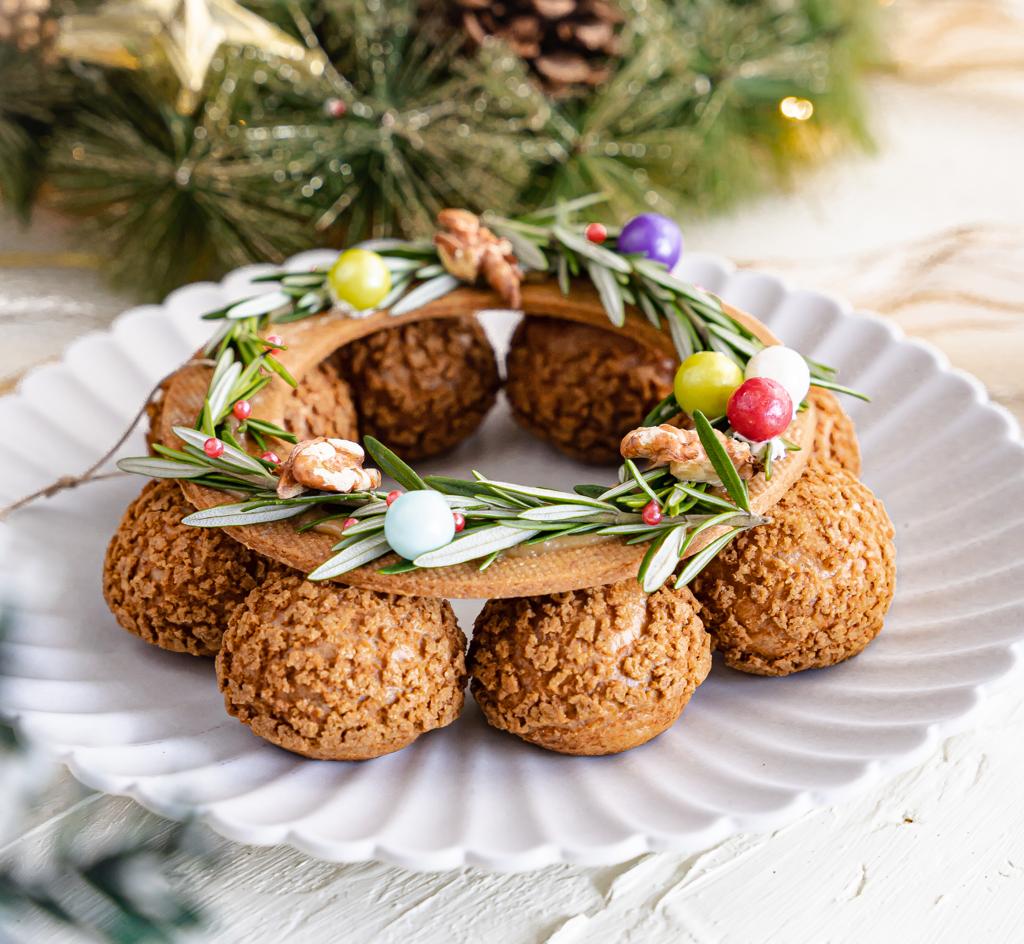 Pǐn By Eve’s Yuletide choux set includes new flavours like Pistachio Rose, Chocolate Raspberry and Lotus Biscoff. You can also order Pǐn's Christmas Roulade or a Christmas Tree built with 11 choux and a Christmas Wreath constructed with eight mini choux.