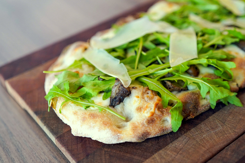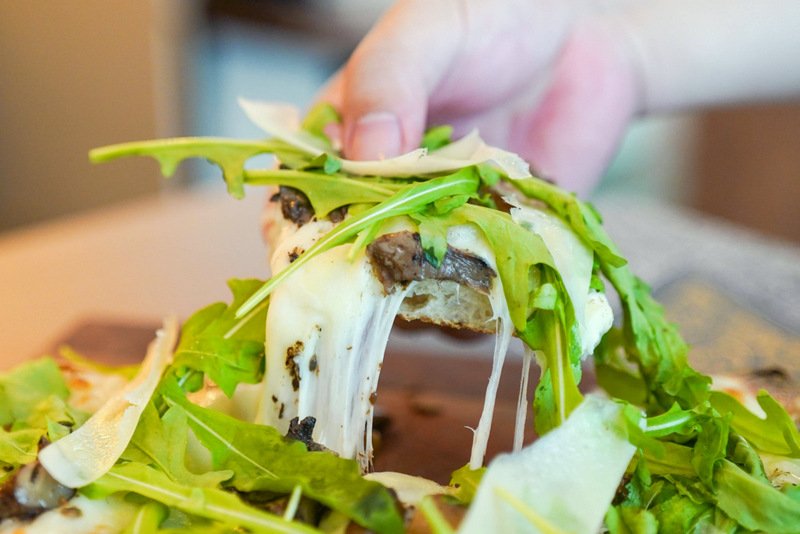 Pictured above is the Tartufata, our best bet for a white, meat-free pizza with a delicate earthiness, buoyed by mushrooms and mozzarella on truffle sauce, showered with rocket leaves and Parmesan.