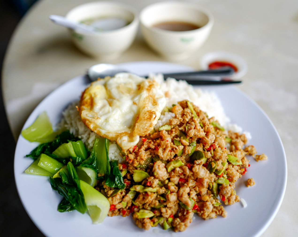 Stink bean lovers, unite: PJ Petai Mee, a stall inside Bandar Sunway's Rock Cafe kopitiam space, pays homage to our cherished parkia speciosa, mixing crunchy sliced bits with tender minced pork & chillies, poured on bowls of noodles (RM8 for a large portion) & plates of rice with gloriously runny fried eggs (RM8) for a hot & hearty, happy & hassle-free meal.