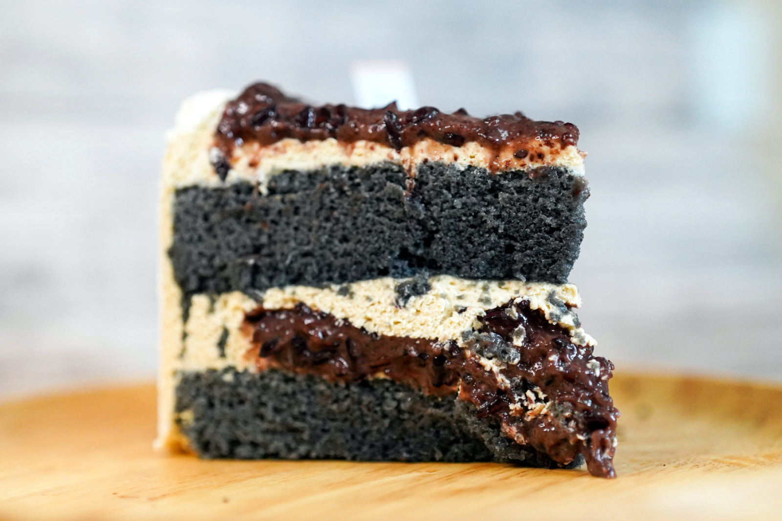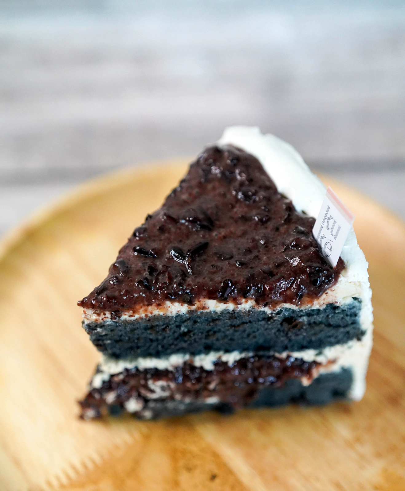 This comes closest to Kuké as kuih and cake, like a Nyonya kuih refashioned into a delicately luscious cake, not too sweet despite its Manis moniker, with black glutinous rice blending in lightly with bamboo charcoal sponge, striped with gula Melaka cream cheese frosting. Moist but not mushy or too cakey, baked fresh daily so it's never dried out or overly hardened.