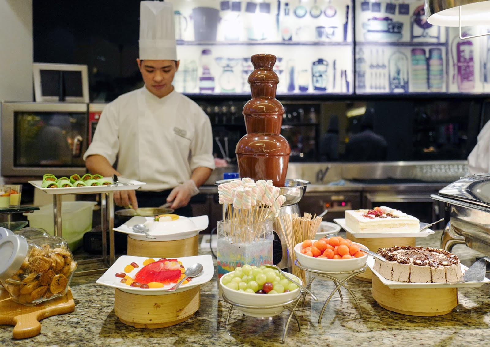 The buffet space is cheerful and inviting, with a brigade of friendly chefs happy to cook in their open kitchens, keeping everything piping-hot and well-stocked throughout a genuinely authentic, gloriously extensive menu that's poised to thrill the taste buds.