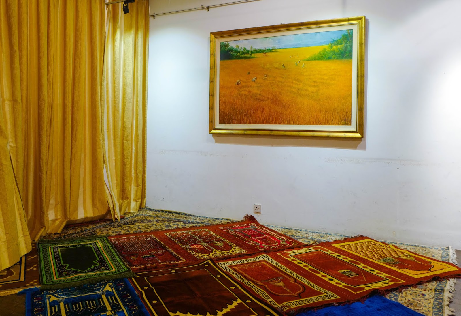 Note that the art gallery next door has been done up village-style for Ahh-Yum's patrons, with a prayer room at one end, partitioned for men and women.