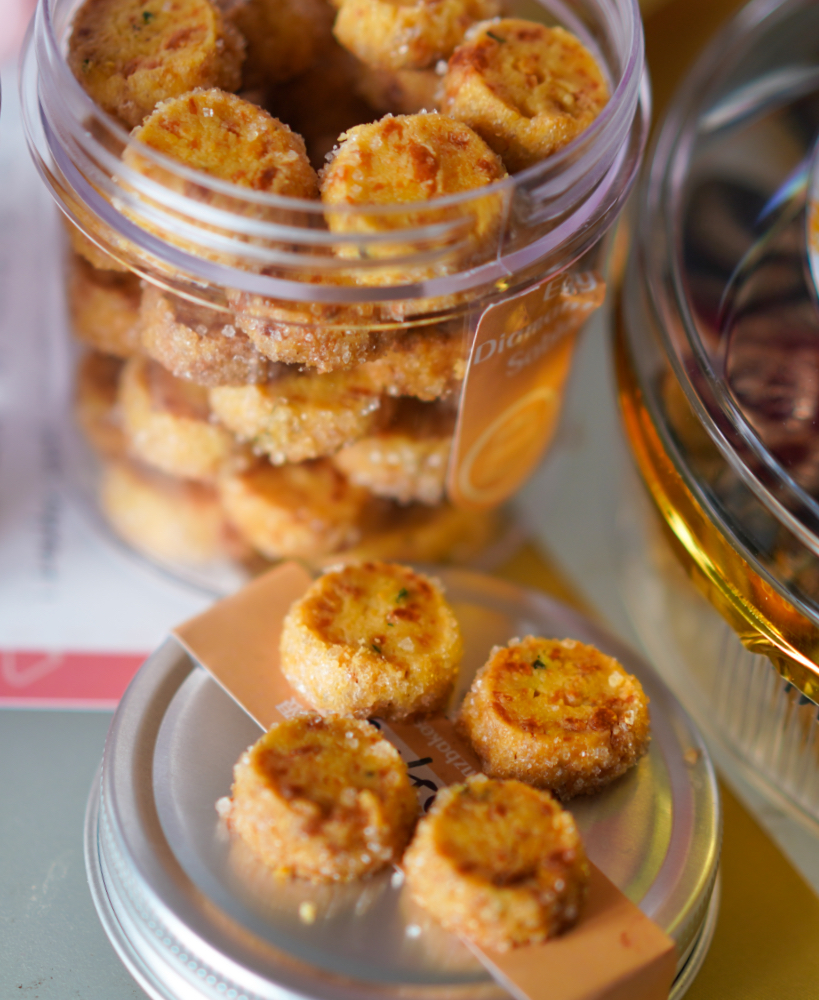 The Salted Egg Diamant Sable took three months to perfect - it's a bold, robust shortbread cookie, with all the aromatic savouriness of salted egg yolk bursting in each crunchy bite.