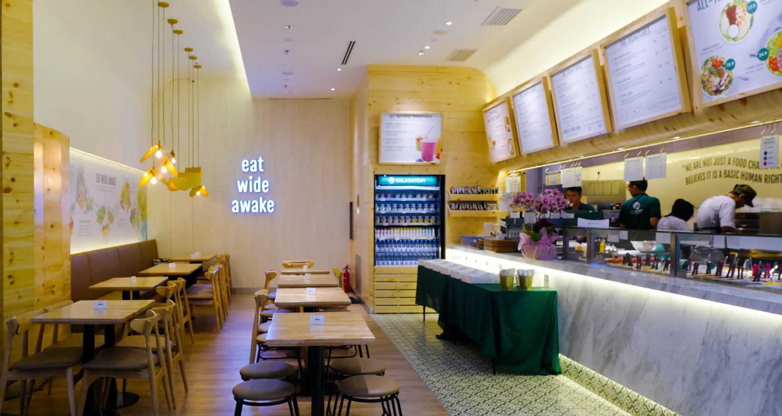 Known for its ethos of Eat Wide Awake, SaladStop! was founded by Swiss-born Singaporean resident Adrien Desbaillets and his father Daniel with an emphasis on ethical sourcing, a subject he elaborated on at SaladStop!'s recent grand opening in NU Sentral.