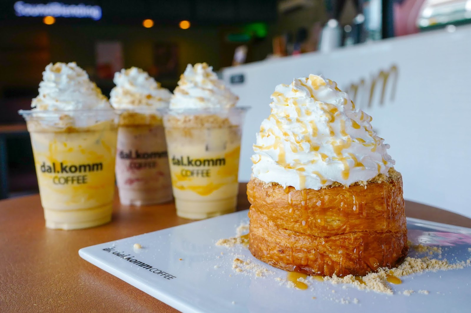 Double your delight by indulging also in some of Dal.komm's exclusive salted egg desserts. We love the Salted Egg Lava Cruffin, the crisp and flaky hybrid of a croissant and muffin - slice it to reveal a custard-like core of salted egg yolk that oozes beautifully out beneath the heap of whipped cream, for a hearty helping that two can share (RM19.90).