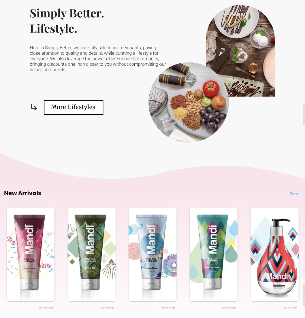 Navigating Simply Better is simple, with Categories and Brands to browse - you can even shop by Lifestyles, offering sections like Health & Wellness, Nordic Living, Artisans, Breakfast Served, and Sweet Tooth to suit your needs.