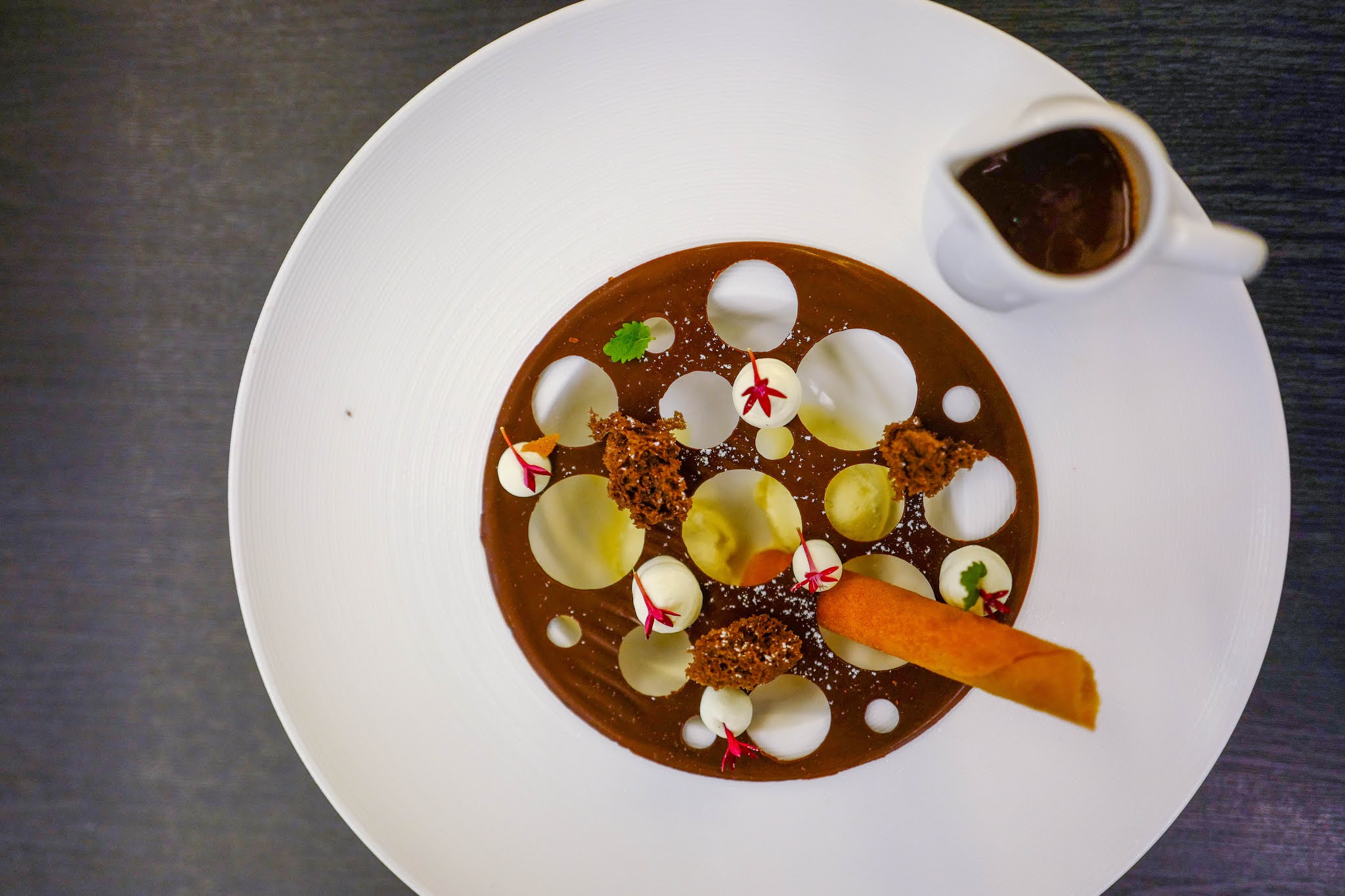 Chef Evert, meanwhile, goes evergreen with the Dame Blanche, revamping the quintessential Belgian dessert of vanilla ice cream with dark chocolate (his parents' customary sweet indulgence) into a noble plated beauty of scoops of vanilla ice cream topped with with a disc of solid dark chocolate, holed up like Swiss cheese, whimsical like a Willy Wonka brainchild, topped with whipped cream and chocolate sponge, poured over with dark chocolate sauce. There's nothing like a Dame, indeed - the perfect dessert for the perennially young at heart.