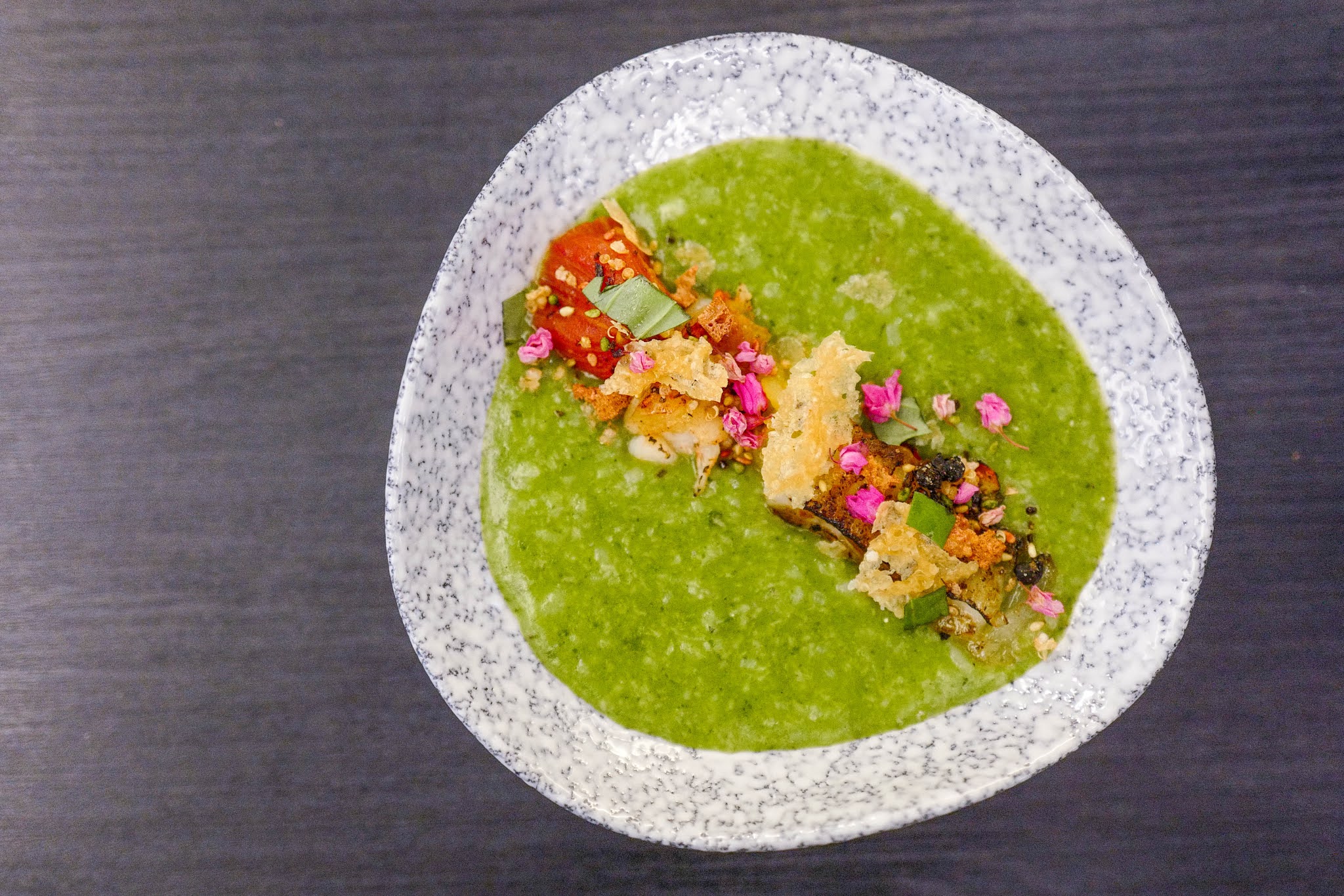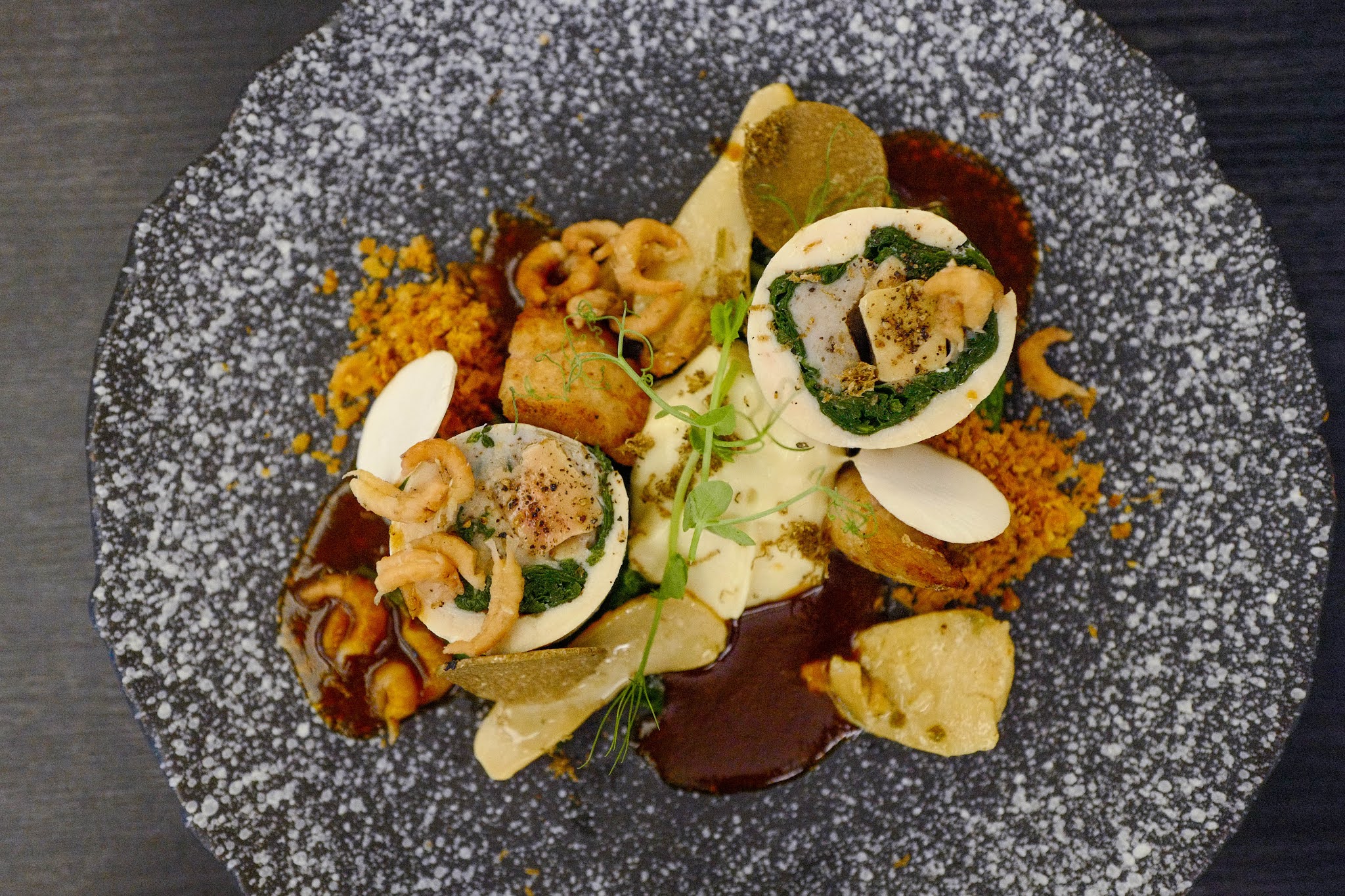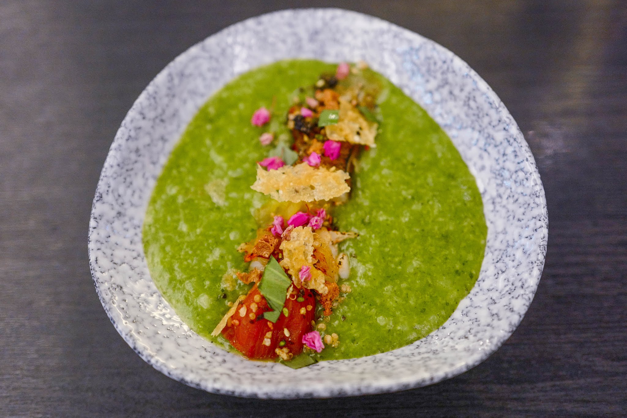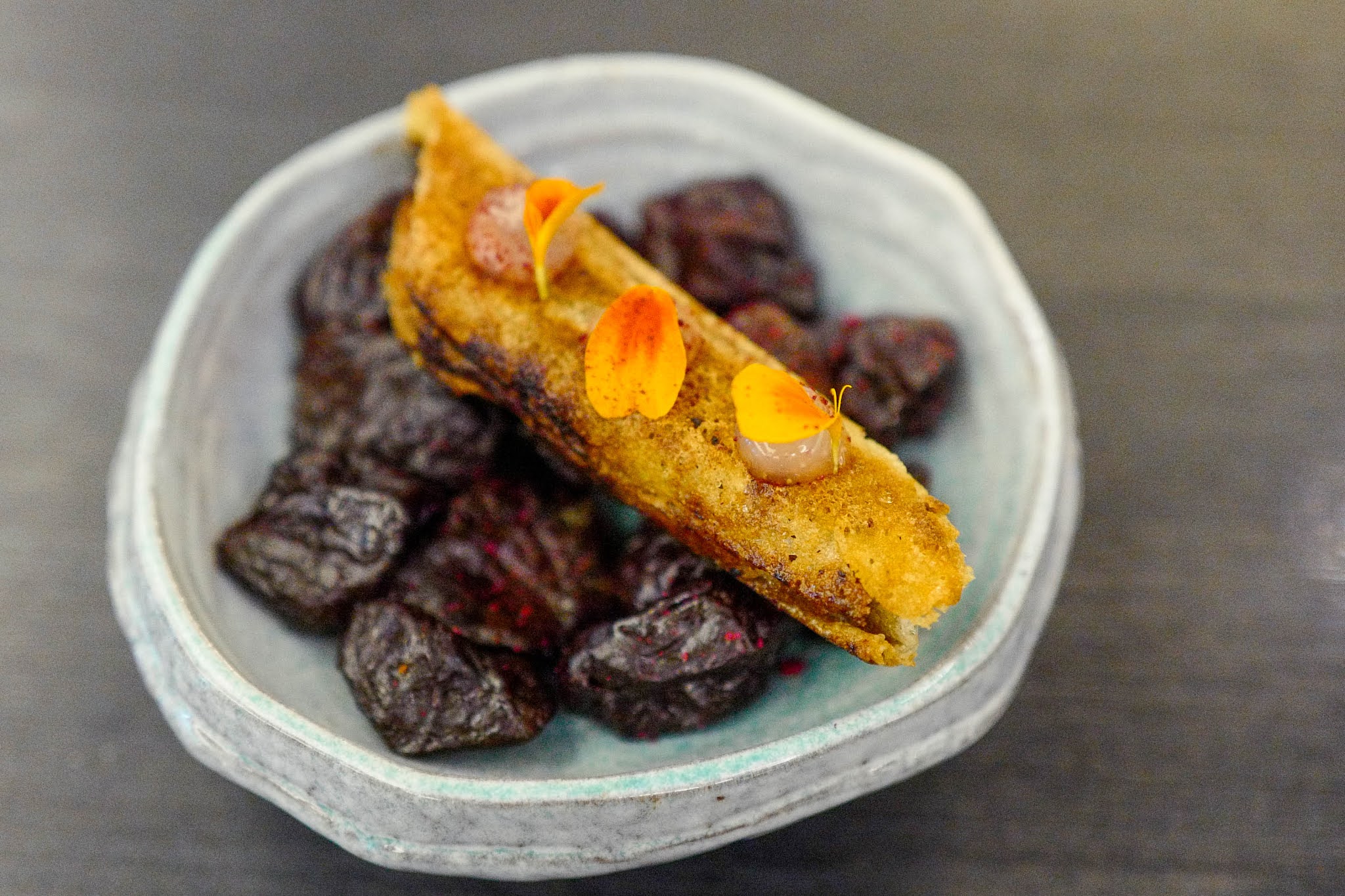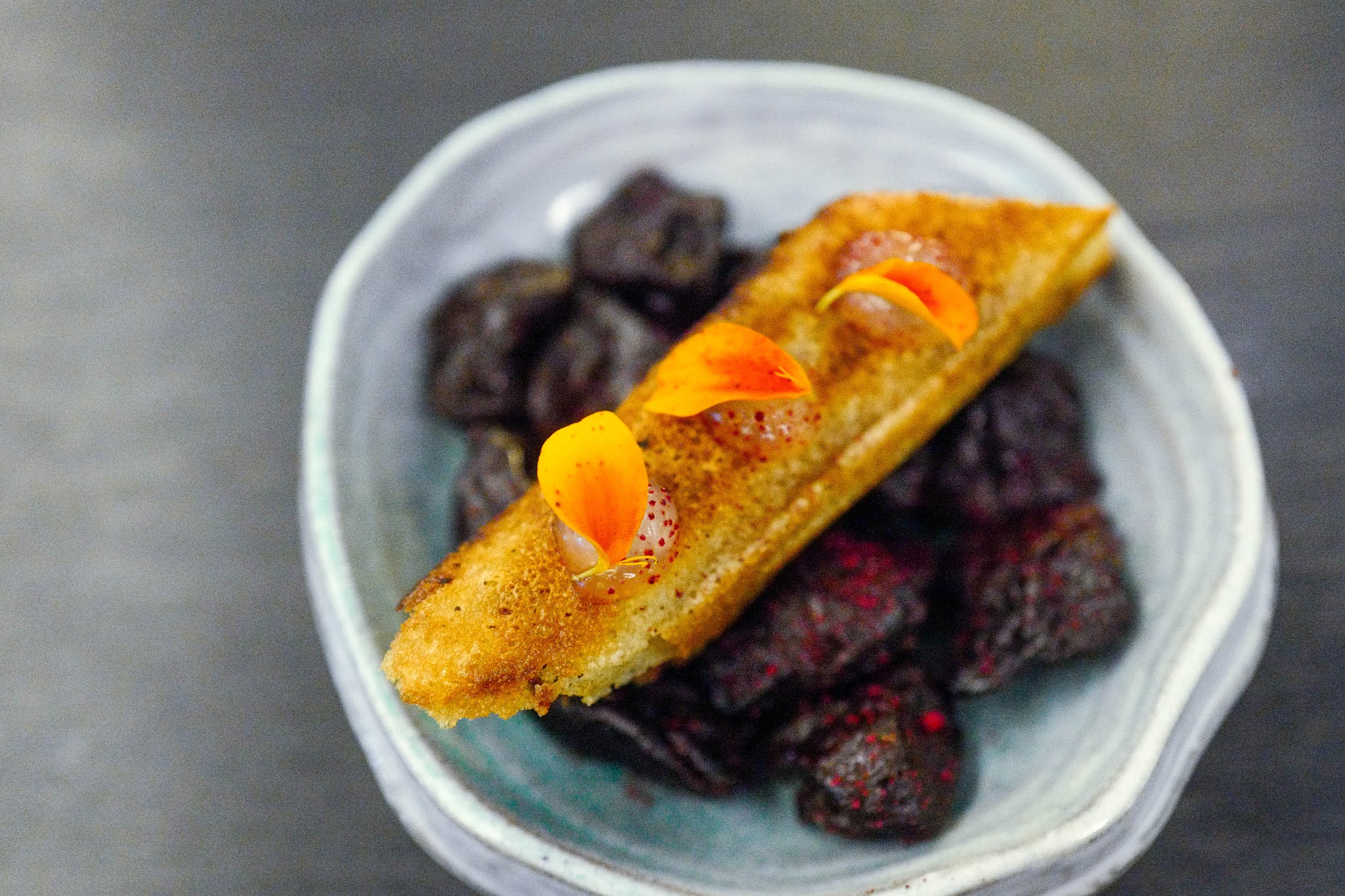The Belgian-born chef Evert's opening salvo reinterpreted Rabbits and Prunes, his grandmother's favourite dish to make for Evert's family whenever they visited her once a month, an hour away from their home in Belgium's northern Flemish region. It's traditionally served as a stew, but Evert's contemporary spin transforms it into crisp feuille de brick pastry stuffed with rabbit meat and prunes, dotted with lemon gel and edible flower petals. It's a lovely, nourishing homage to rustic cuisine, with the prune's potent sweetness lingering in wake of the fleshy rabbit.