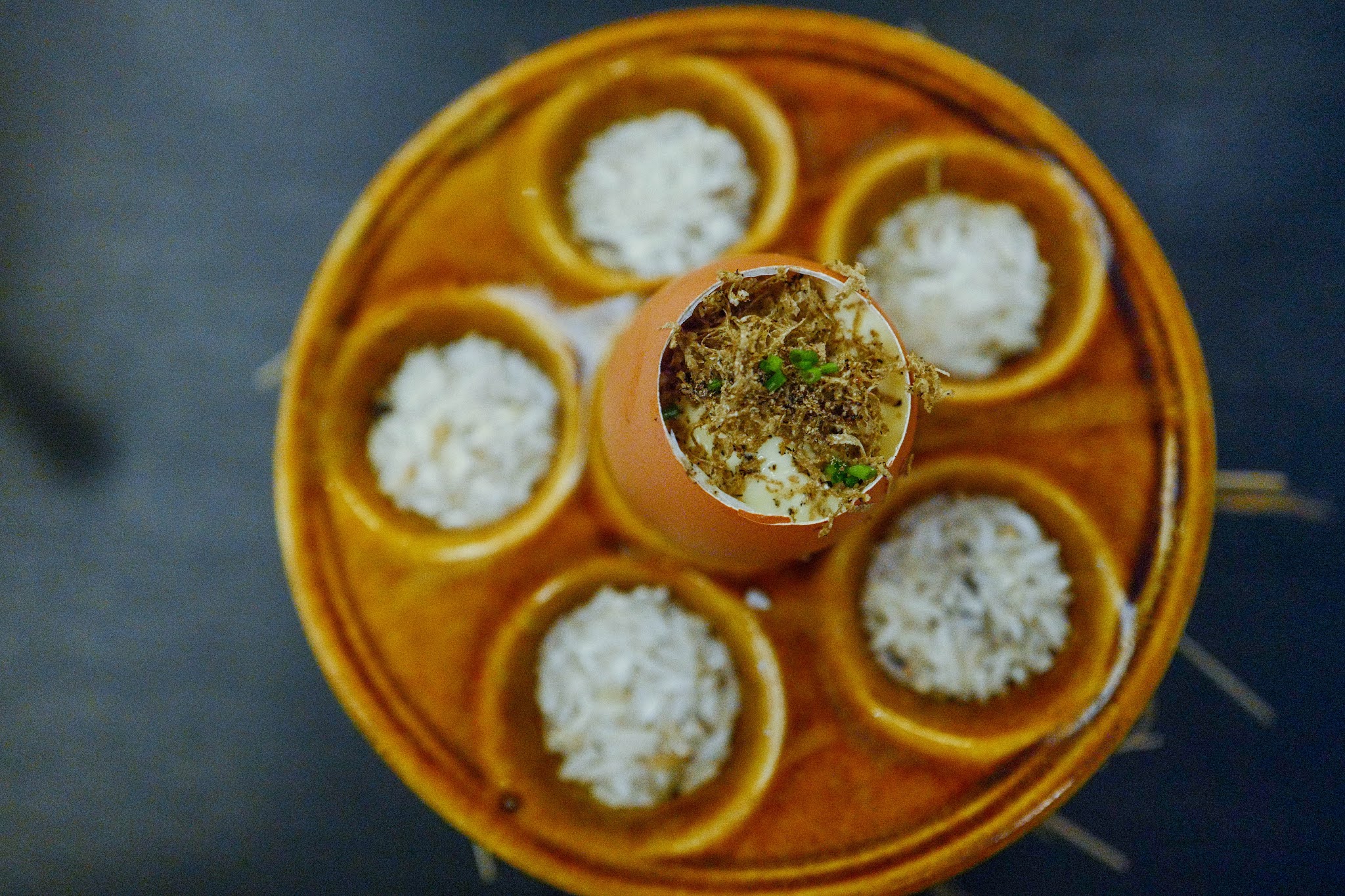 Our meal hatched with the Humble Egg, the Sarawak-born Chai's homage to his late father who encouraged and financially supported him to explore the world. While Chai was flying to one of his first culinary jobs in Barcelona, he had a layover in Paris, where he ventured to a revered restaurant.