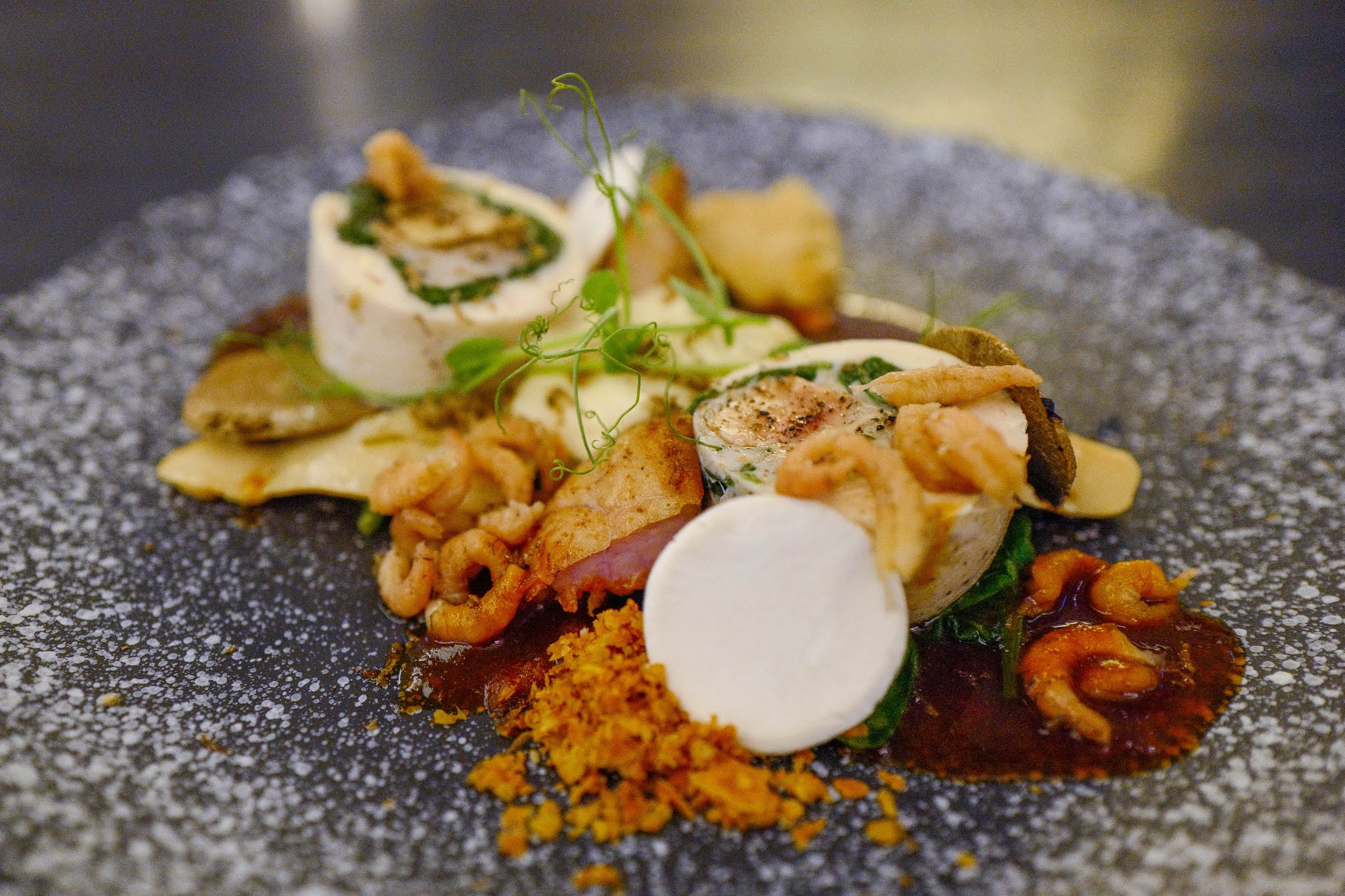 Voulez-vous Vol-Au-Vent? Oui! As a youth, chef Evert used to frequent a bistro that baked tall, cylindrical puff pastries; as an adult, he deconstructs and turns them into a complex roll of chicken breast with foie gras and chicken mousse within, sprinkled with chicken skin across pastry pieces and a jus of chicken bones for plenty of poultry pleasure. True to Evert's confidence, there's still more in this interplay of dynamics between land and sea - veal sweetbread and truffles, plus Hollandic brown shrimp and mashed potatoes boiled with scampi-infused milk. This intimate dinner might be dubbed Souvenirs of the Past, but this intricate dish deserves to be memorabilia for the future.