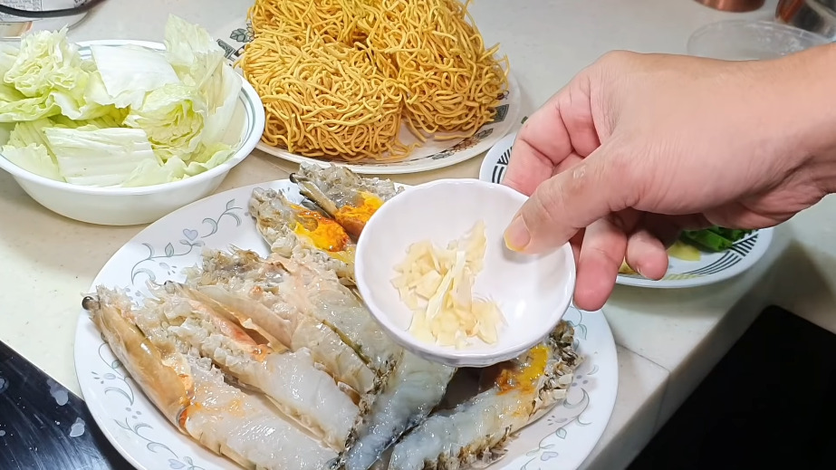 Sang har (river prawns) - split into half, with tomalley kept intact