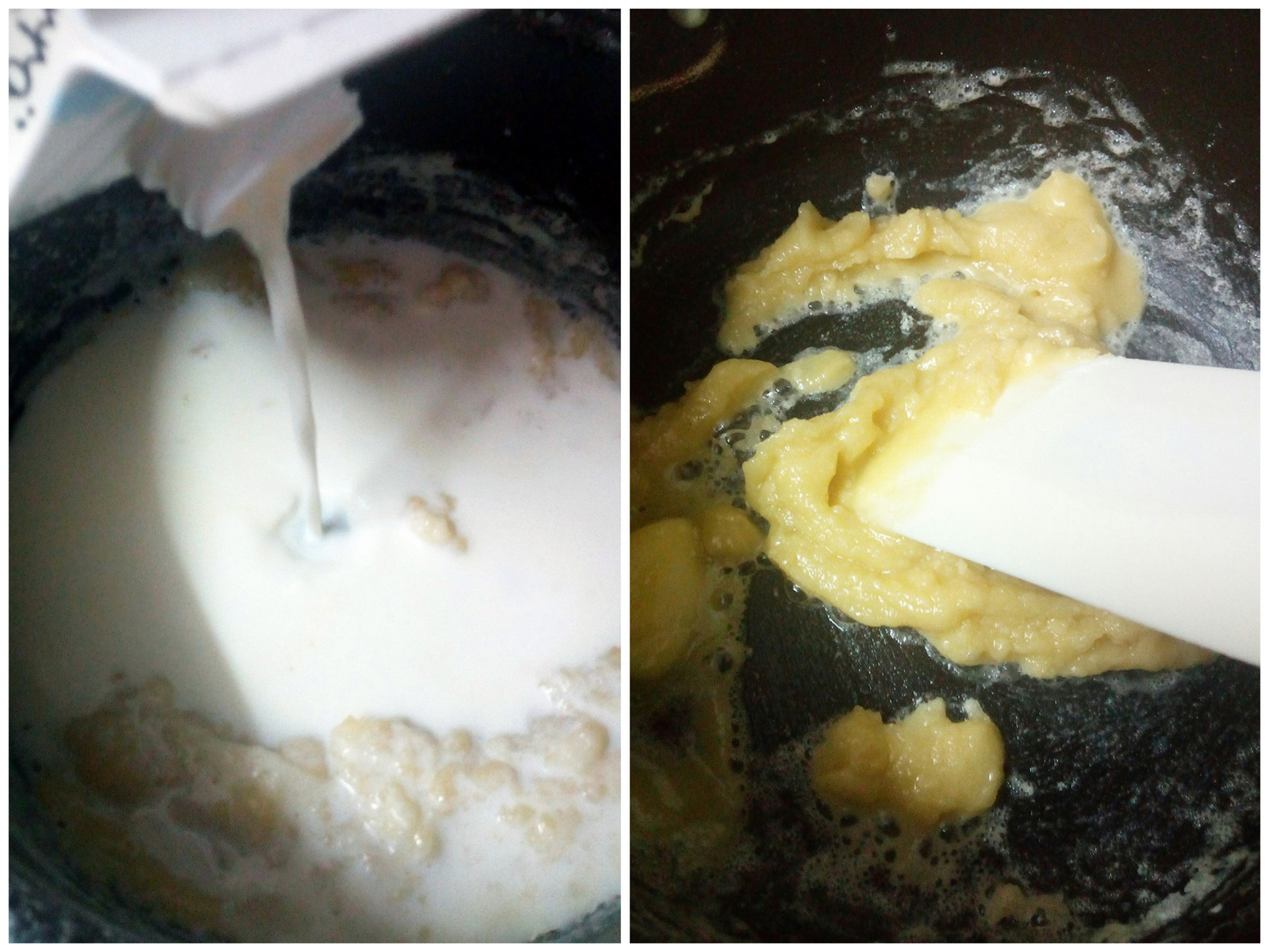 3. Slowly add in the milk, whisk as you go. Keep adding milk till done.