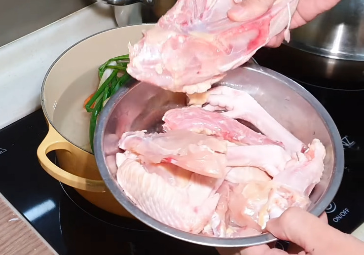Batch Three - any kind of meat: Cooking Ah Pa uses 800 grams of various free-range chicken parts for this recipe, including the breast meat, leg, feet, bones.