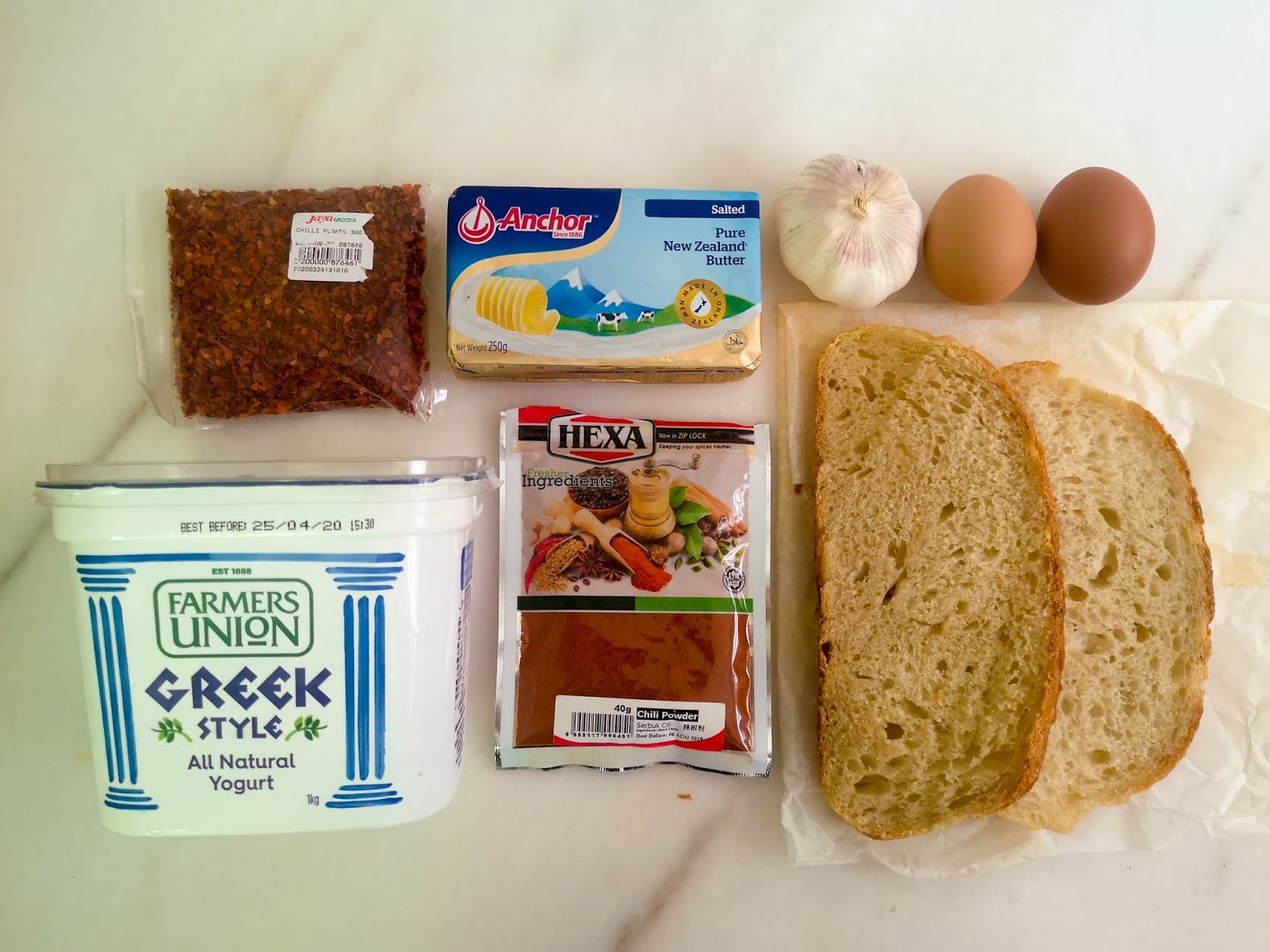 Gently place the poached eggs in the bowl with the yogurt. Drizzle the chilli butter over the yogurt and eggs. Season with salt and pepper to taste. Dip the sourdough bread into the yogurt and runny yolk. Enjoy your not-so-hard work!