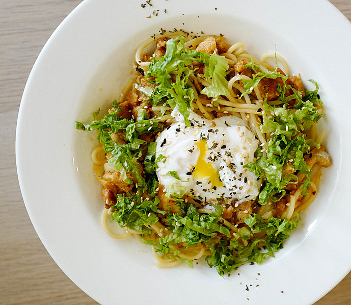 Top temptations include a bowl of rice turned blue with bunga telang, blanketed with slices of savoury-smooth Taiwanese sausages & a runny fried egg (RM12.90), & a plate of spaghetti spiked with Muar otak-otak, plopped with a poached egg (RM14.90), for cheap & cheerful nourishment that recalls a warm hug, true to the venue's name. For fun beverages, sip on the Blue Sky Latte (RM9; honeyed milk dyed once more with butterfly pea) & Taiwanese craft beers.