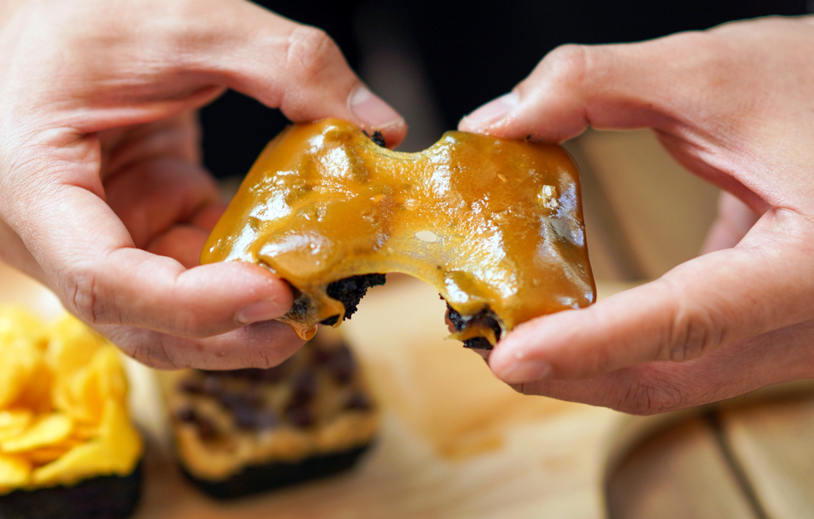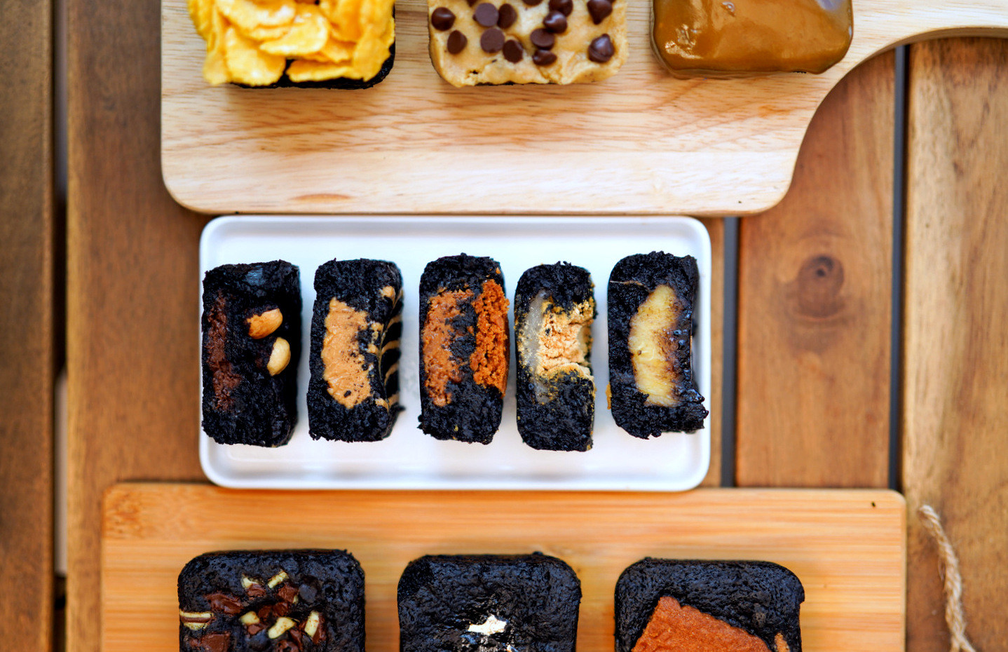 A smartly striking brownie is the Kinako Mochi, a Japanese-inspired brownie with a layer of stretchy glutinous rice cake within, sprinkled with toasted soybean flour on top. This comes with a syringe of black sugar syrup to inject as needed, for a playfully multi-textured treat to excite all generations.