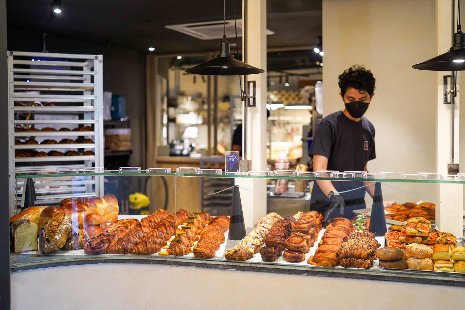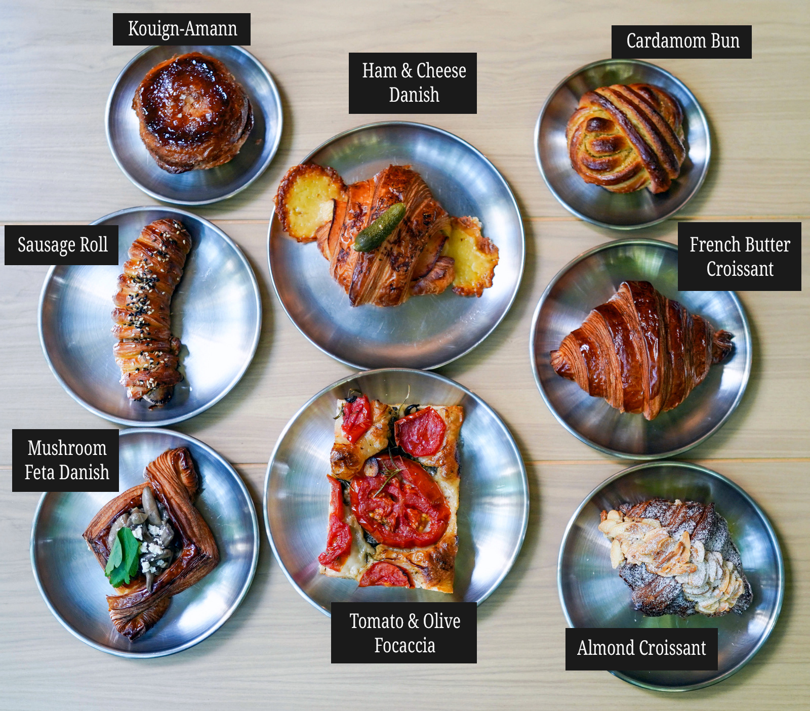 The pastry selection - golden, fresh and flaky - is irresistible, from almond croissants to cardamom buns, kouign-amann to mushroom feta danishes and tomato olive focaccia.