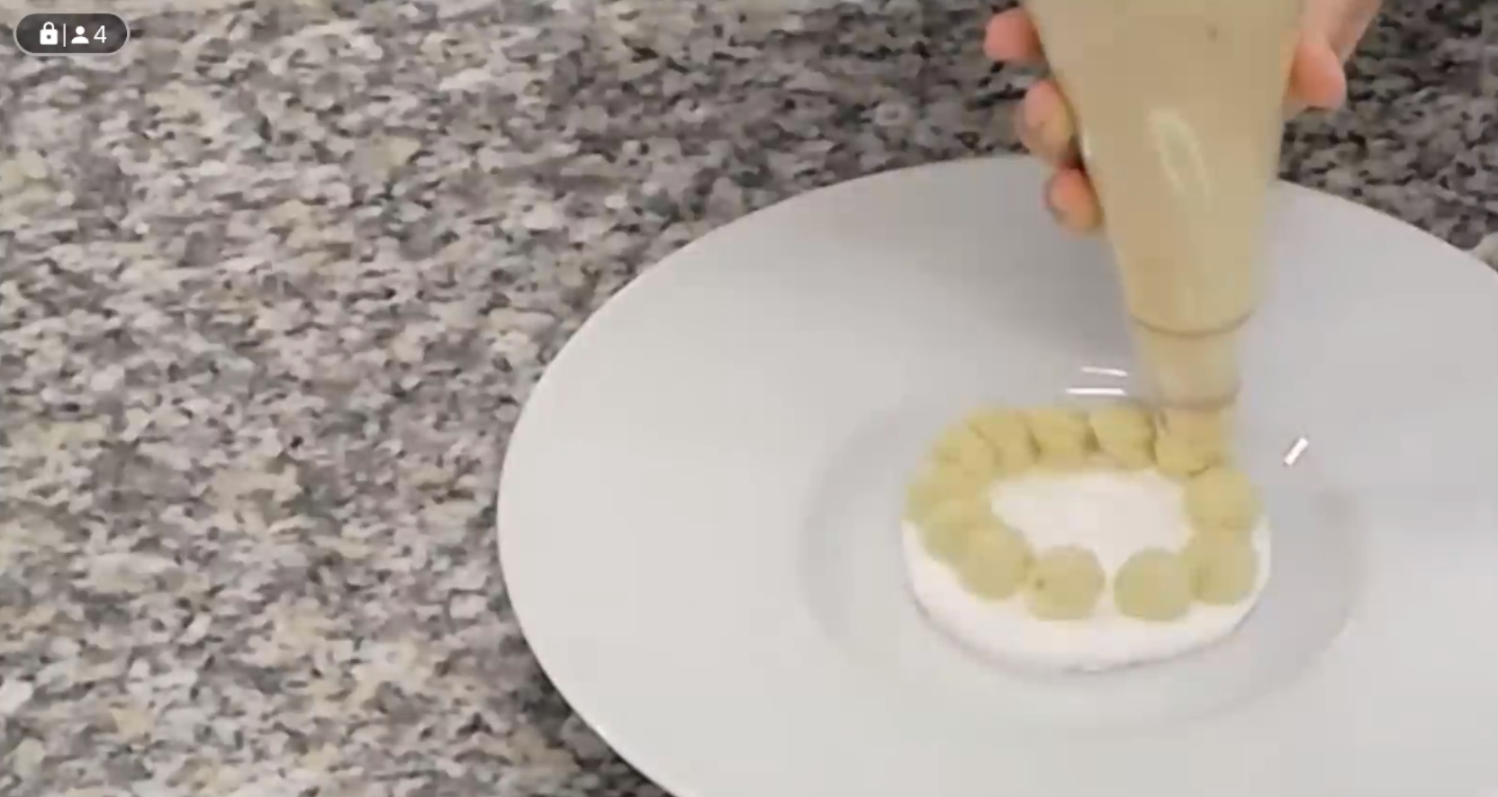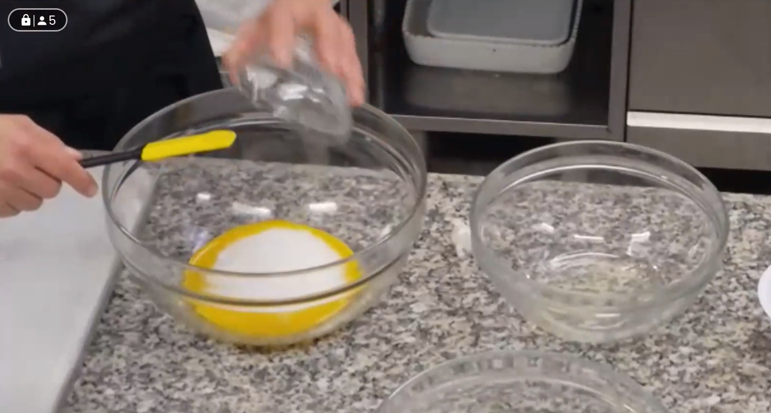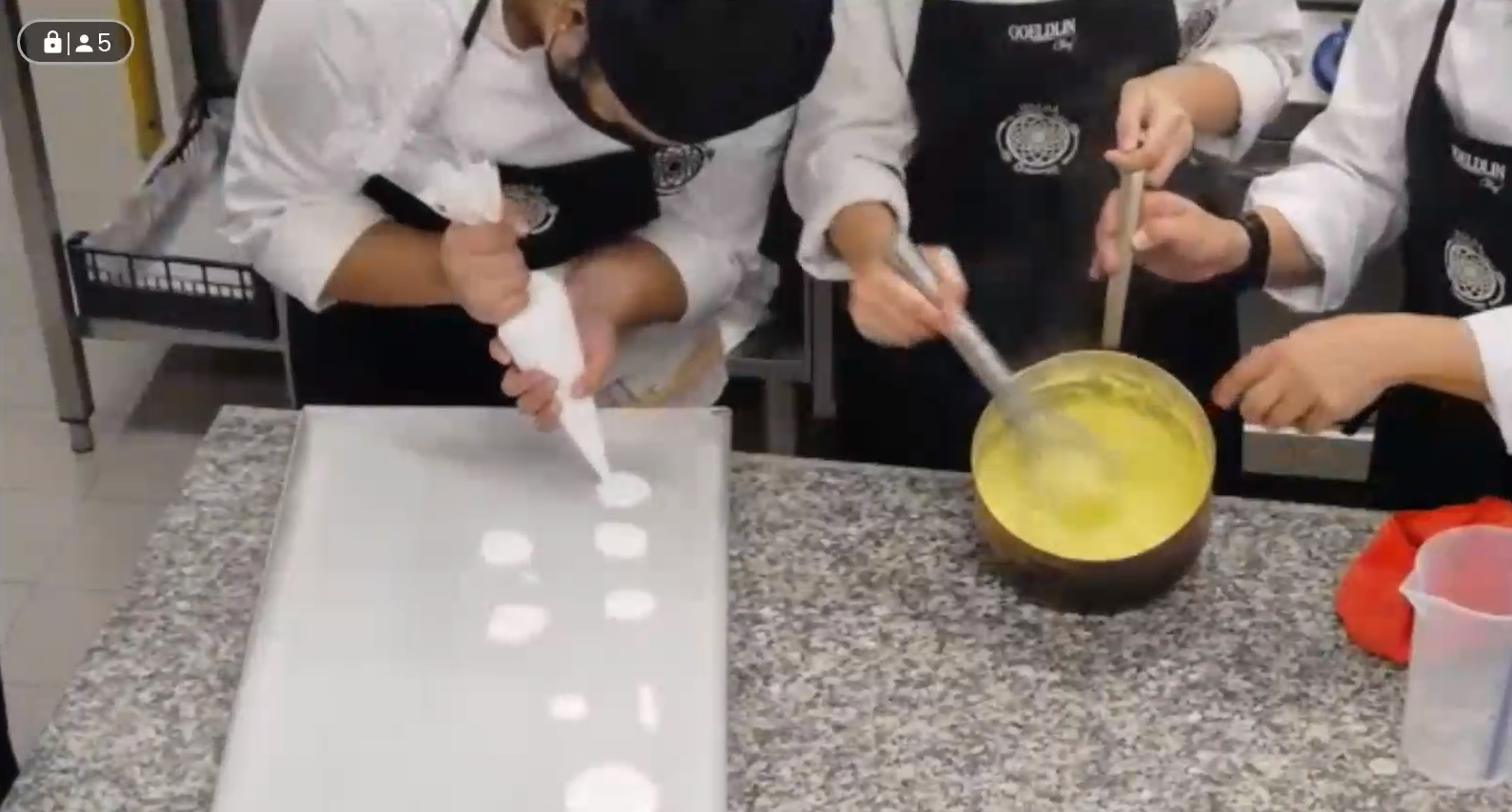 The hour-long session was filled with step-by-step demonstrations that students could appreciate, from whipping egg whites and sugar together to checking the temperature with a thermometer. Precise measurements were provided in each step. The masterclass ended with piping crème patissiere to produce beautiful little swirls on top, then piping the chestnut cream in a zig-zag pattern to finish.