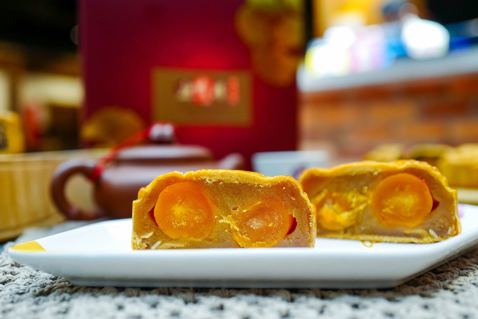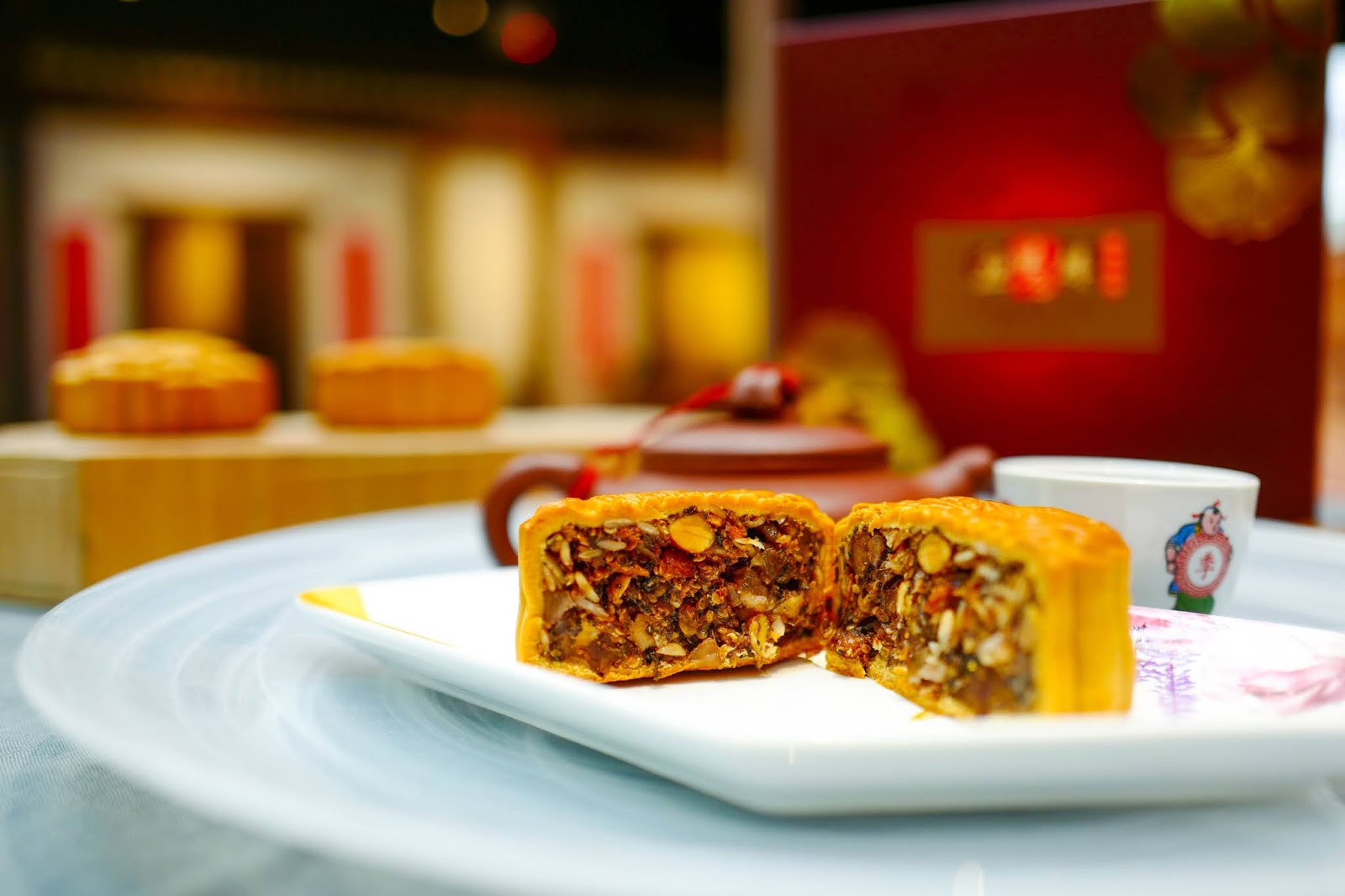 The mui choy furnishes a slight savouriness to the ensemble - it's not dominantly overpowering, but it's definitely there, gently genuine, making this a mooncake to relish slowly, bite by bite.