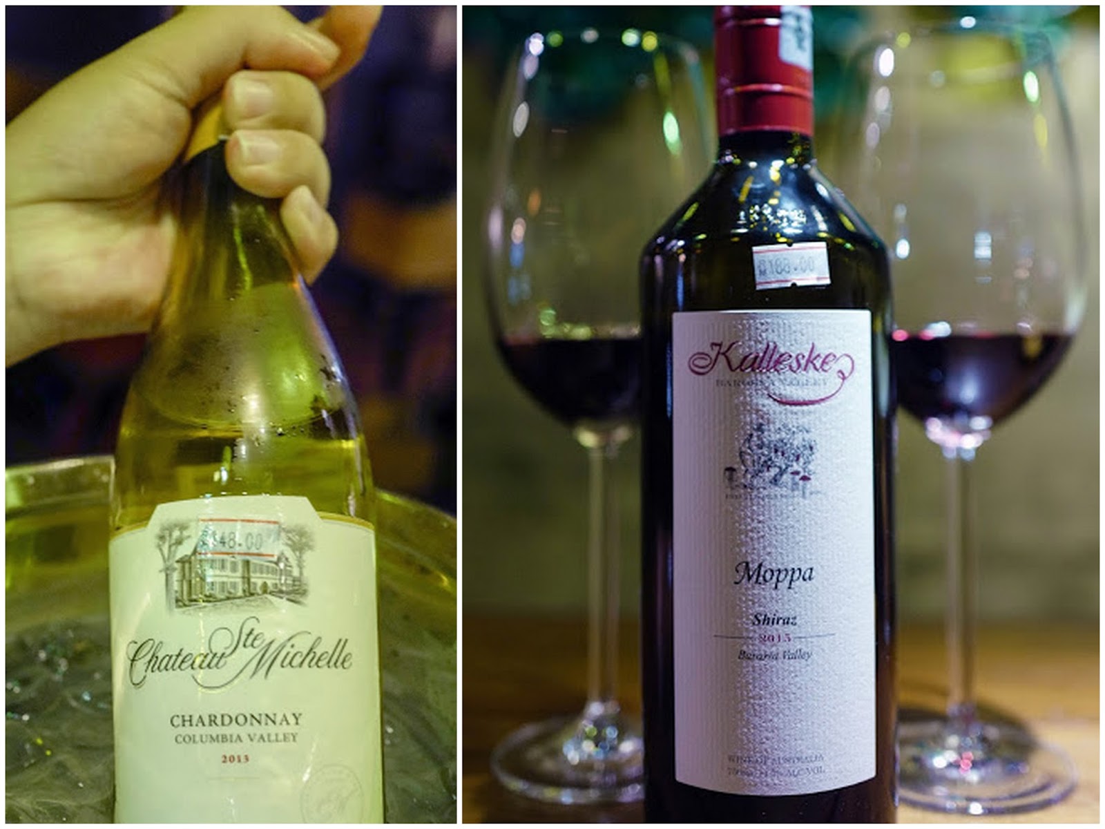Our two companions for a few rewarding hours here: A Chateau Ste. Michelle that's hailed as a food-friendly Chardonnay from Columbia Valley, bright and light, with soft citrus subtleties, sufficiently versatile to work well with everything from simple seafood to mild chicken and pork preparations.