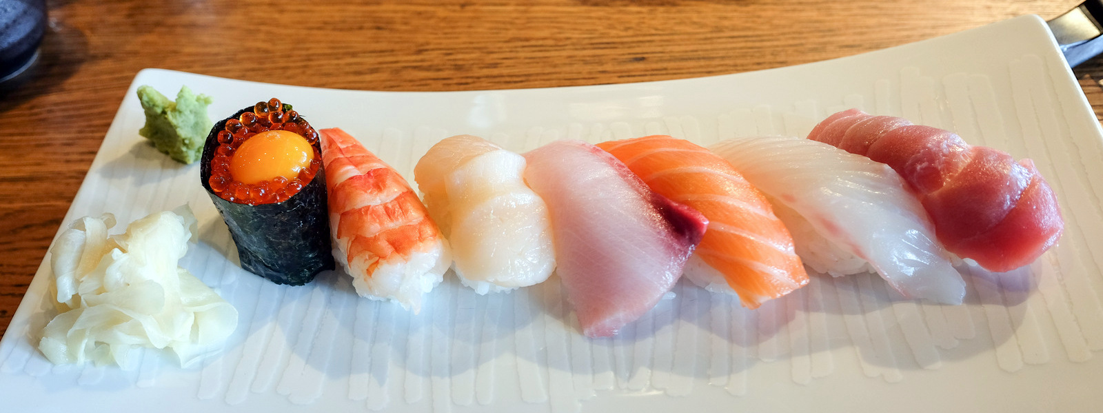 Seafood is such a staple in Oslo, so it's no surprise that Japanese sashimi joints are serious business here, from relatively traditional restaurants like Alex Sushi, where nigiri is draped in substantial cuts of salmon, halibut, hamachi, sea bass, bluefin tuna and scampi, alongside a glorious gunkan topped with ikura and a quail egg yolk ...