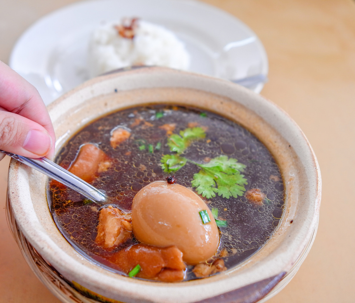 The claypot braised pork leg soup with rice seems popular too, swimming with gelatinous cuts of meat and a hard-boiled egg, sweetened with wolfberries and Chinese herbs, potentially substituting for bak kut teh in its own way. RM9.