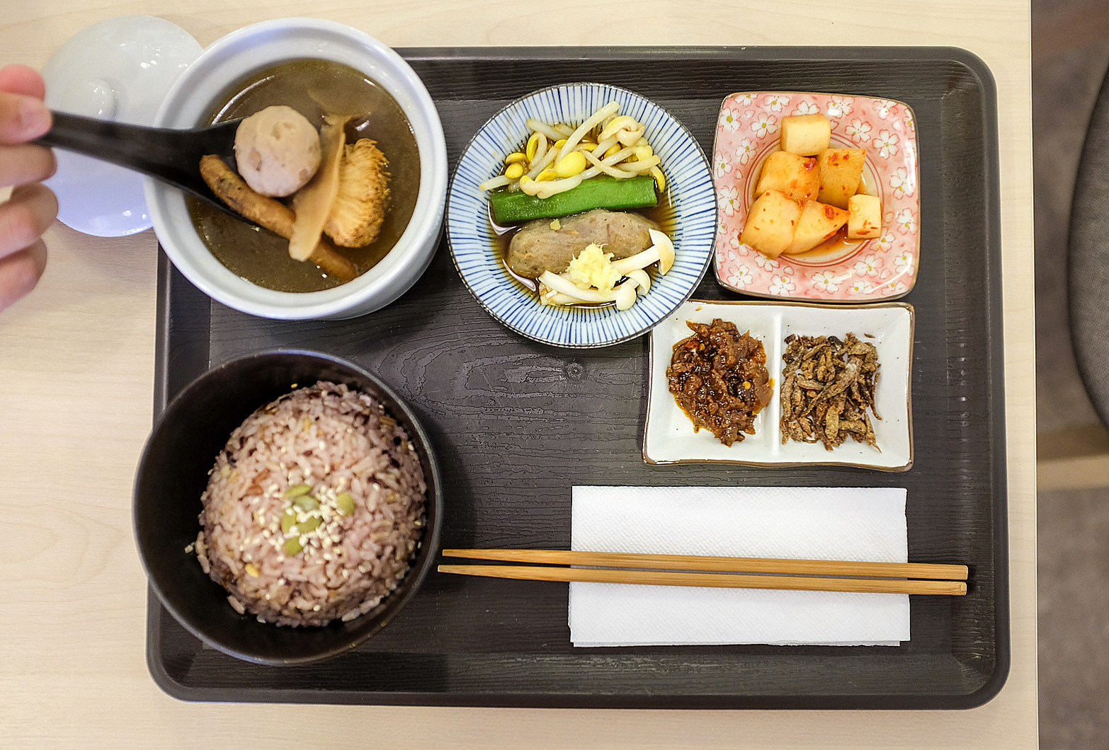 The Wonderful Soup set meal (RM16.90) comprises a fresh-tasting, steaming-hot broth laden with lotus seeds, cordyceps, dates & goji berries, accompanied by brown rice & gingery vegetarian meatballs. We also like the multi-grain rice porridge (RM8.90), soulfully thick & textured with century eggs & salted eggs, complemented by braised peanuts & dried mushrooms.