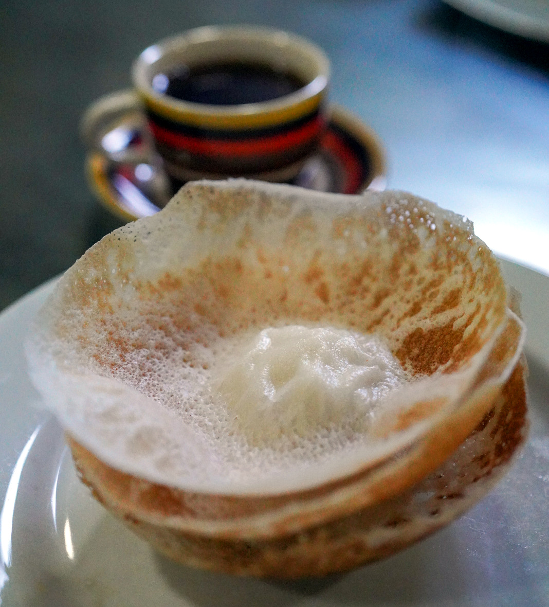 Hoppers are Sri Lanka's quintessential snack, savoury and sweet appam that can be relished throughout the day - our favourite is the soft-boiled egg hopper, paired with lunumiris spicy sambal paste.