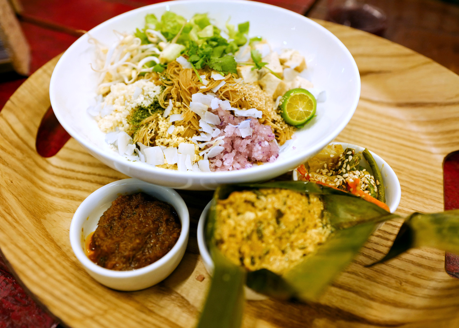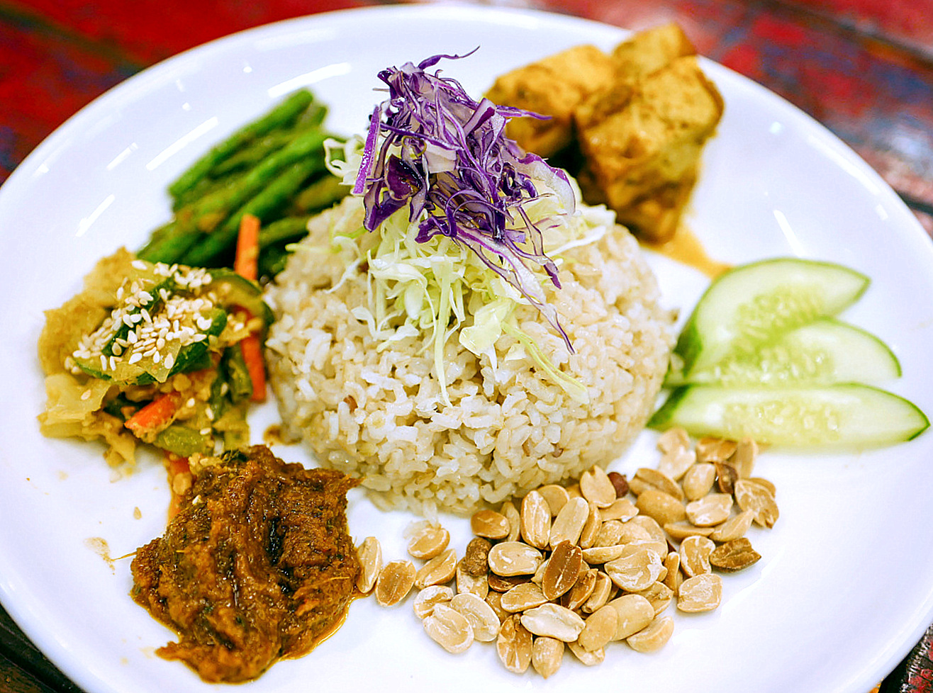 Plenty of behind-the-scenes effort is poured into the soulful, hearty offerings here: Start with the signature nasi lemak, which relies on brown rice from Sarawak's Bario highlands - Justlife even has a team member stationed in Bario to help ensure that the hill rice continues to be organically grown, just as it has been for generations by the Kelabit tribe, planted only once a year, with the soil & buffaloes rested after each harvest in the lush, pollution-free land. It's a beautiful base for this meat-free interpretation of Malaysia's national dish, made wholesome & wholly guilt-free, still fragrant & flavoursome nonetheless, infused with virgin coconut oil, with the bonus kick of house-made sambal, acar, tofu rendang & long beans in turmeric sauce (RM19).