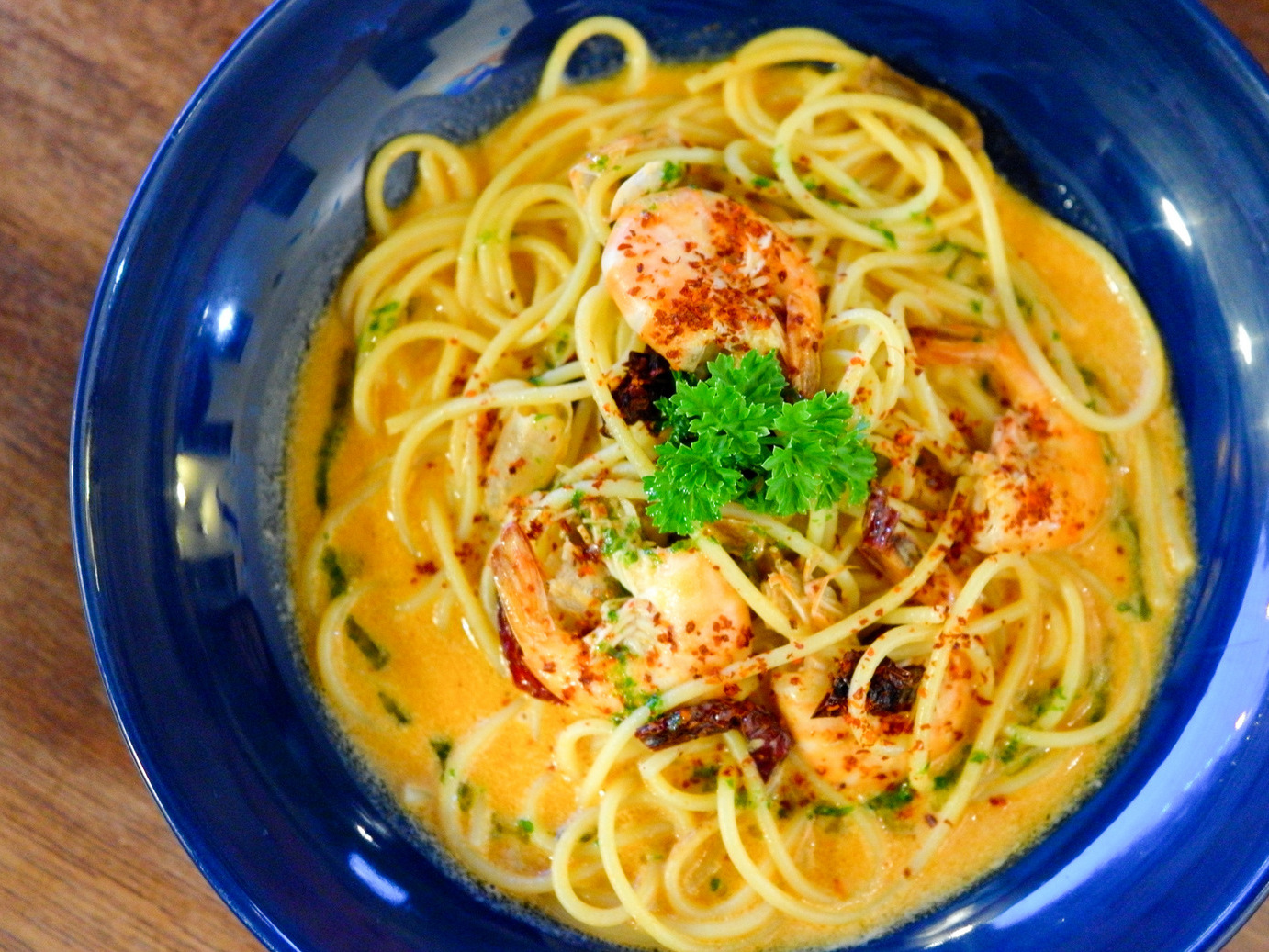 Start with noodle and rice platters, which showcase Malaysian, Indonesian and Thai inspirations - the tangy-sweet Laksa Goreng (RM9.90) and mildly smoky Kuetiau Kayan with fresh prawns (RM13.90) proved tasty enough for us to polish off the plates. We were spoiled for choice with the rice offerings, but ended up with the restaurant's recommendation of Ayam Goreng Balado, with crispy chicken and eggplant in fragrant, fiery Minang-style sauce that went well with steamed rice (RM15.40) and Petai Fried Rice, fulfilling our stinky-bean addiction with plenty of petai buried beneath a sunny-side-up (RM15.90).