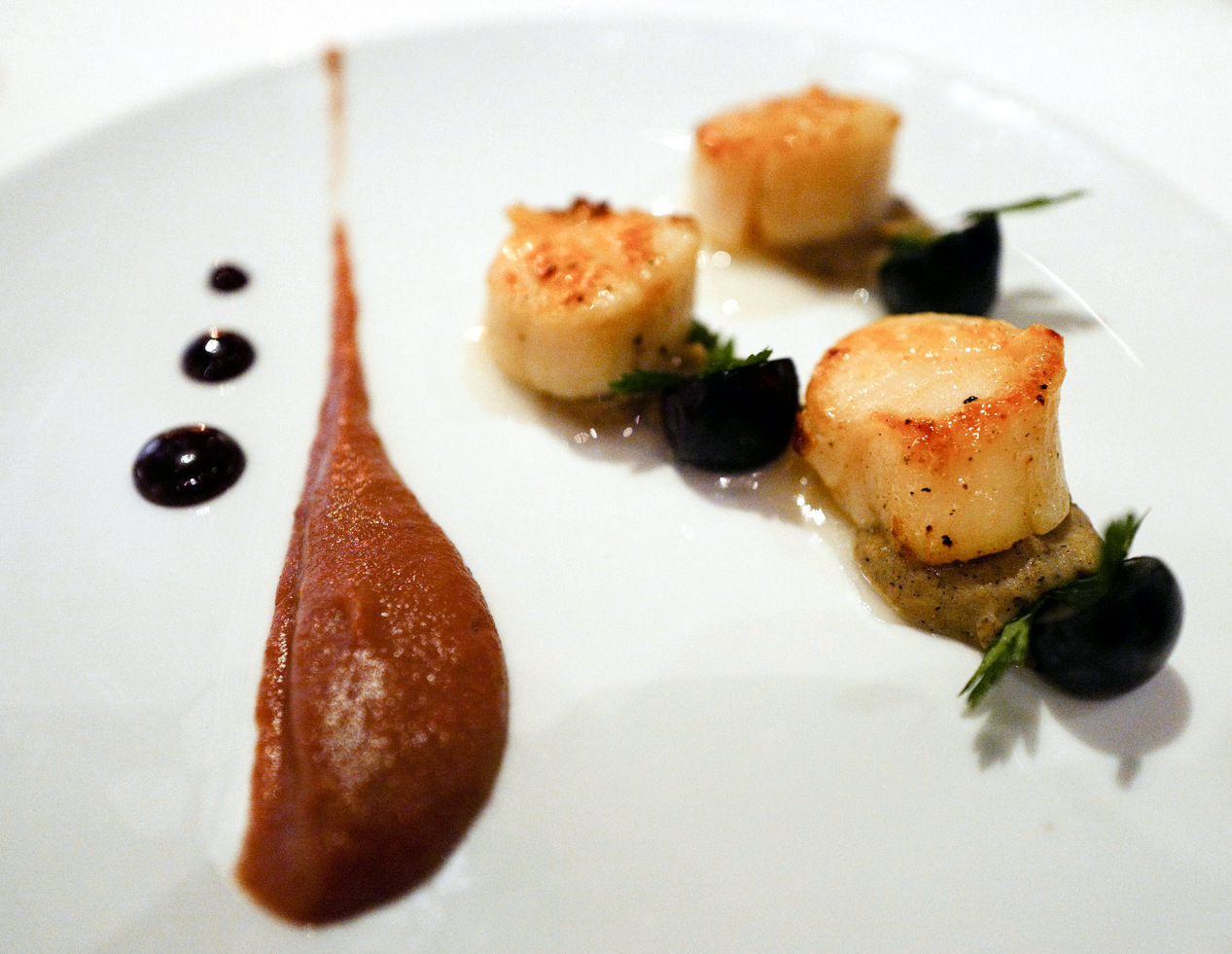 A sampling of seafood, twinned with the harvest of the land: Seared Hokkaido scallops are always a treat, but Barcudes makes them more memorable with the fruit-adoring flourishes of a pear-and-ginger chutney and grape gastrique, the latter evoking his childhood memories of wine-country grapes (RM98).