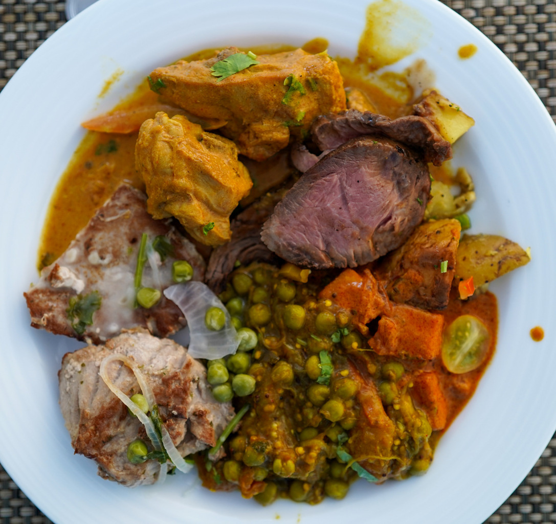 Breakfast, lunch and dinner are all-you-can-eat affairs at the Maldives' Olhuveli island resort, with the buffet spreads shining a light on South Asian salads, bread and curries; tuna turns up a lot, so fans of this fish are in luck.
