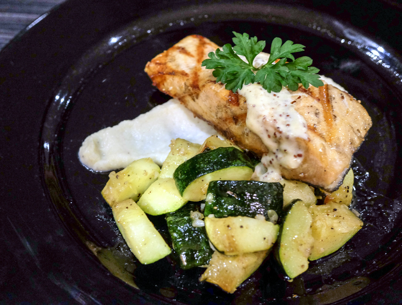 ... before reaching safe harbour with salmon, capably grilled & geared up with sun-dried tomato pesto, zucchini & cauliflower coulis (RM42), or smoked & served with a potato dill pancake, red onions, rocket leaves, capers & sour cream (RM28).