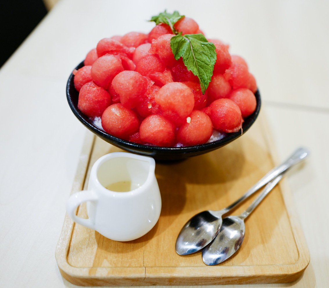 Complete your visit with the chilled, soothing comfort of kakigori-inspired indulgences, each bowl of shaved ice blanketed entirely with soft dragonfruit morsels and juicy watermelon balls (RM26 each).