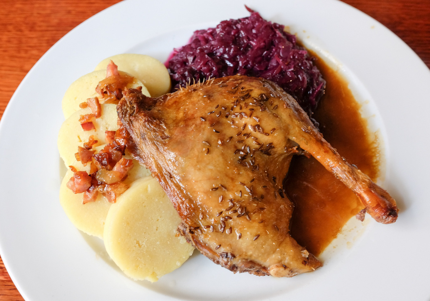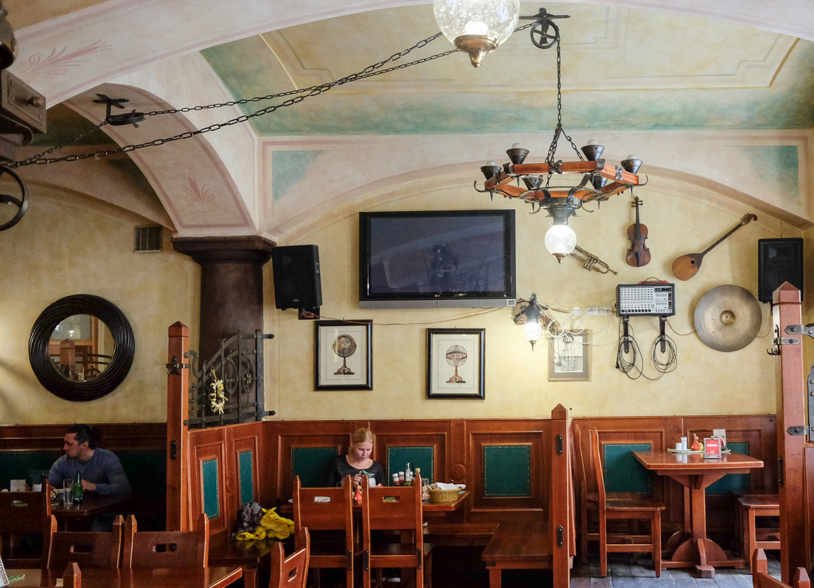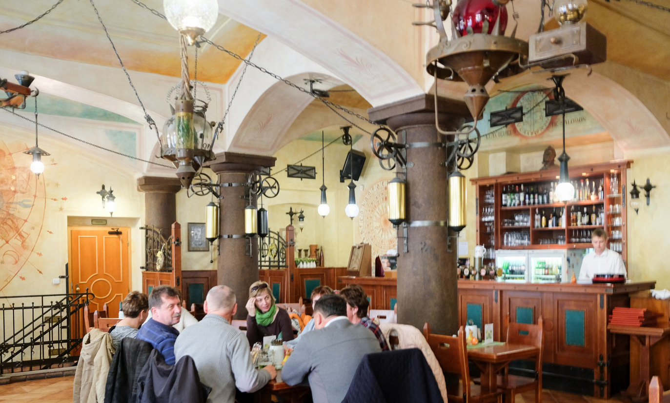 Escape the crowds of Prague with lunch at this unassuming Czech pub: The roast duck is delicious, irresistibly juicy, served with red cabbage and potato dumplings, while the deep-fried cheese fritter with cranberry sauce represents hearty, merry fare. Wash down with green-hued beer.