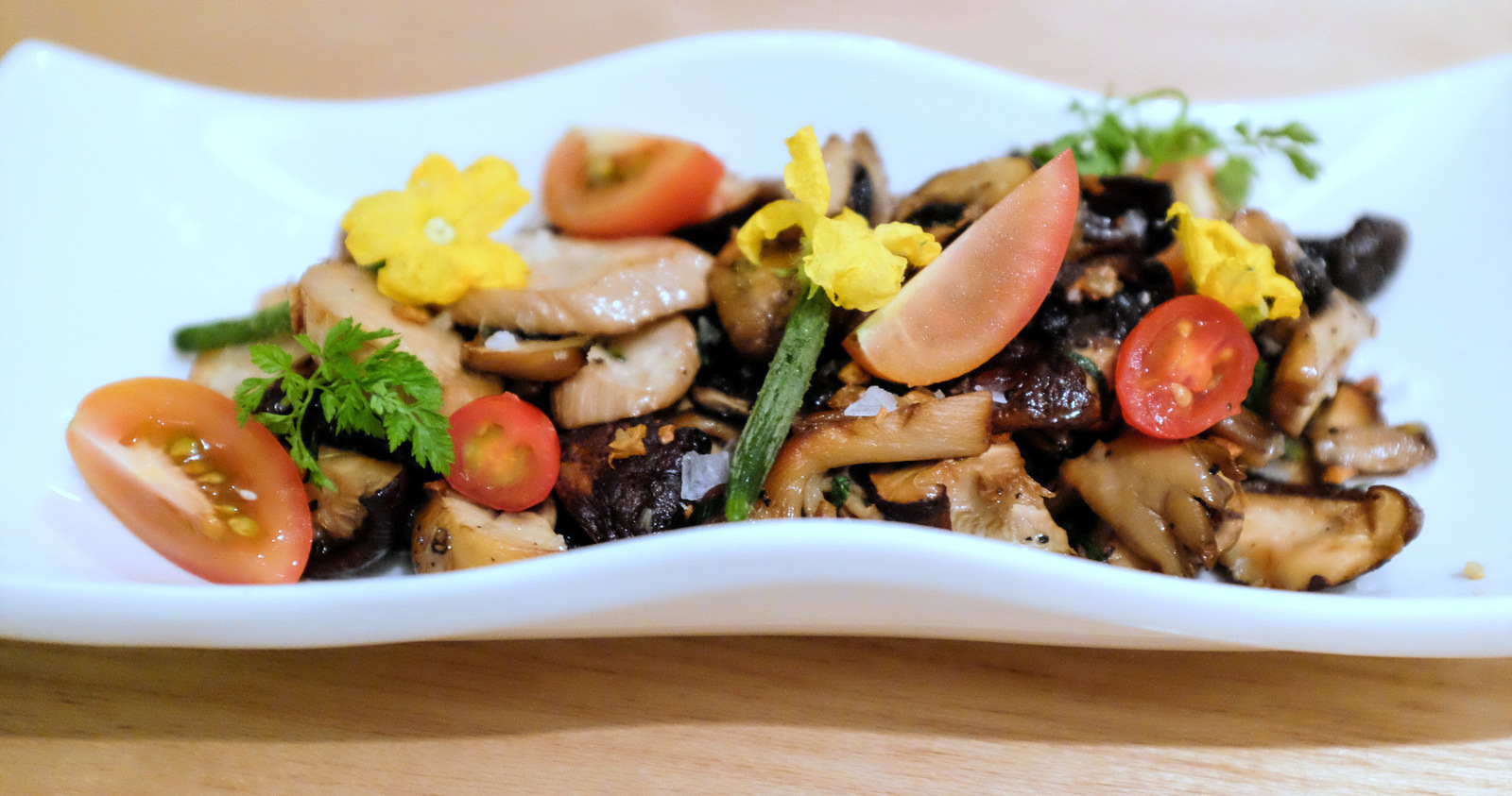 A restaurant that lavishes such detailed care on each dish deserves respect - commence with the mackerel salad; the fish is commandingly fresh & captivatingly fine in flavour, wet-aged & kitchen-cured for a sultry, succulent smokiness, well-matched with heirloom tomatoes, baby cucumbers & capers (RM28). Thumbs up too for the crisp-battered zucchini blossoms, stuffed with a surprise, spilling out with Roost's own-made mozzarella when sliced, balanced with intimations of chilli & mint (RM22). The outlet's founders now even run their own vegetable farm in Cameron Highlands, for an assurance of consistent standards.