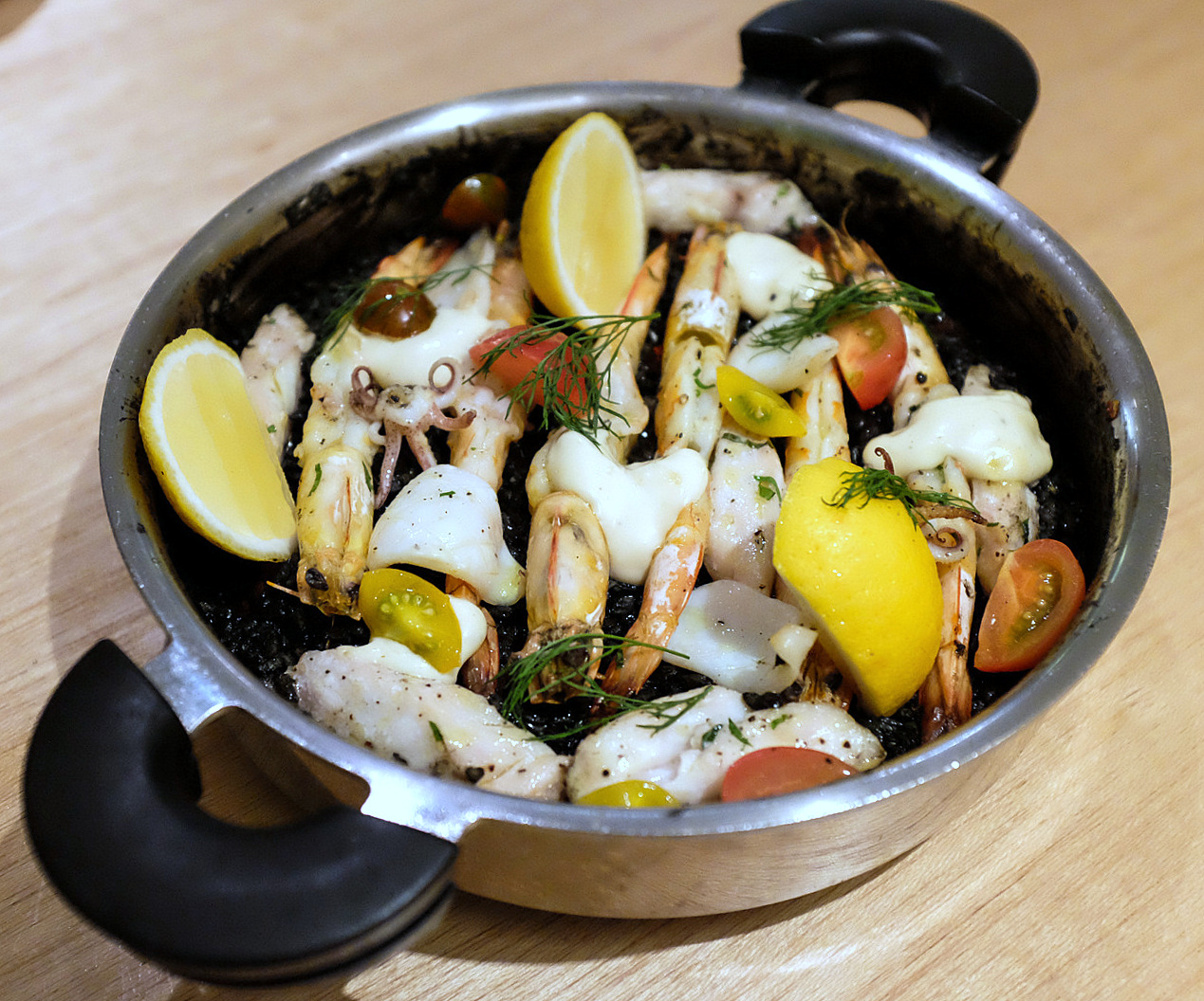 Local seafood, from Pulau Ketam & other Malaysian waters, is represented in everything from a crispy squid starter with ink aioli to a mangrove crab salad with sorrel. Portion sizes span the sea bass with beetroot risotto (RM38; perfect as lunch for one) or a squid ink paella with snapper, prawns & other fresh catch in the pot (RM105; ideal as a family feast, this requires a one-day advance order) - satisfying triumphs in transposing Italian & Spanish rice-based cooking into our domestic context.