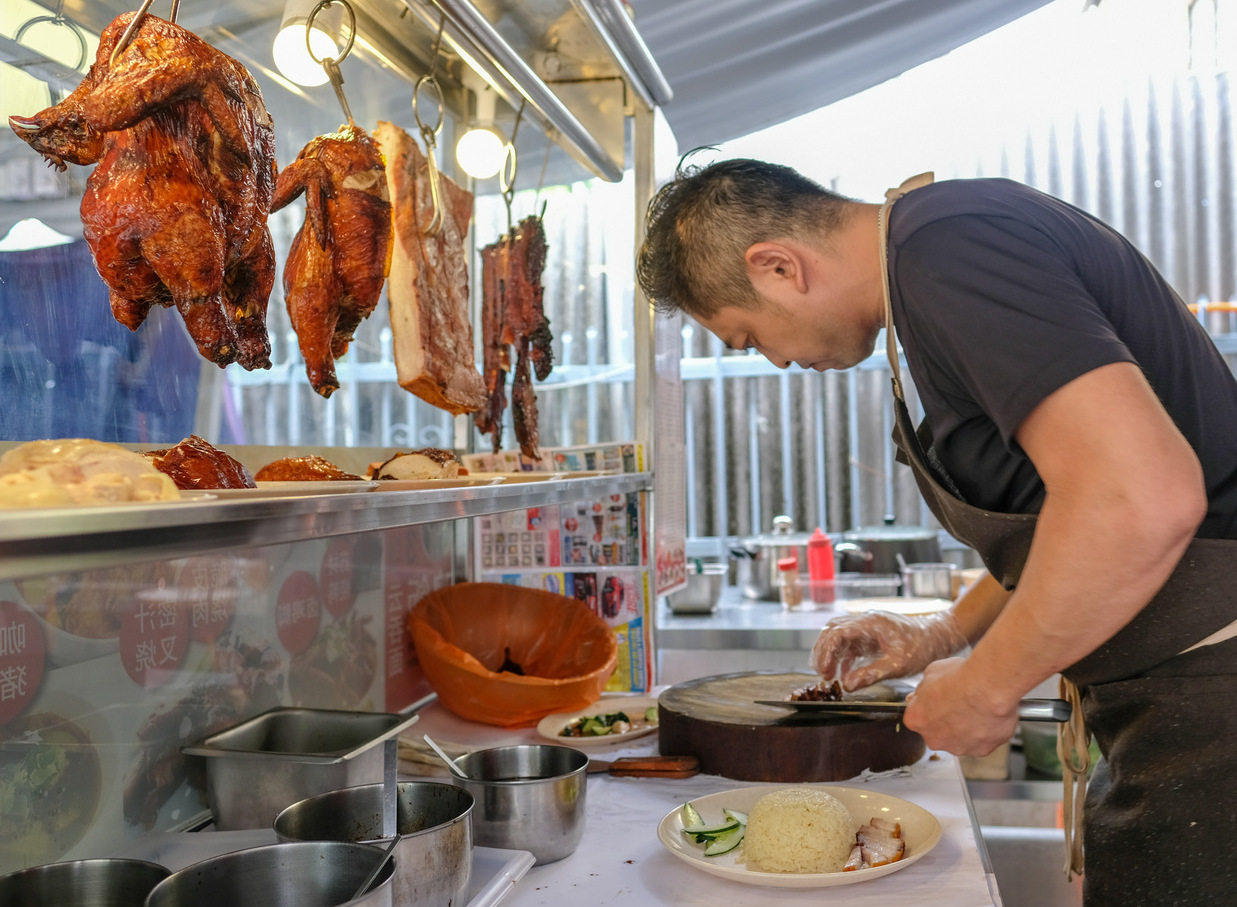 63 Roast's chef-founder Kenny Wong spends three hours each morning preparing the roasts at the backyard of this space, relying on recipes he learned from his uncle. The siu yok and char siu are flavourful, the chicken is fleshy and tender, complemented by chilli sauce that's also straight from the kitchen here; the food can be ordered in pretty much any combination - a plate of siu yok and char siu with rice costs RM7, while a chicken thigh with noodles and wontons is RM7.50.