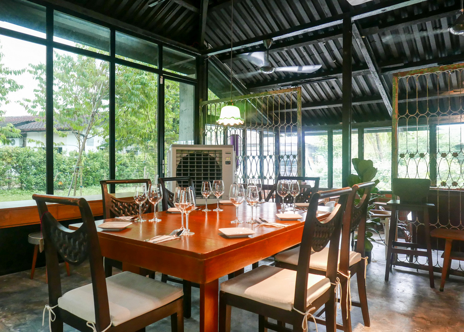 8 Jugra's chief allure is its unique setting, evoking a restaurant in a cottage, balanced somewhere between rustic & elegant. Its Italian-dominated menu comes close to competent - gnocchi with pork salami in gorgonzola sauce (RM26), a four-cheese pizza (RM28; camembert, mozzarella, parmesan & gorgonzola) & spice-simmered lamb shank with herb-infused rice (RM32).