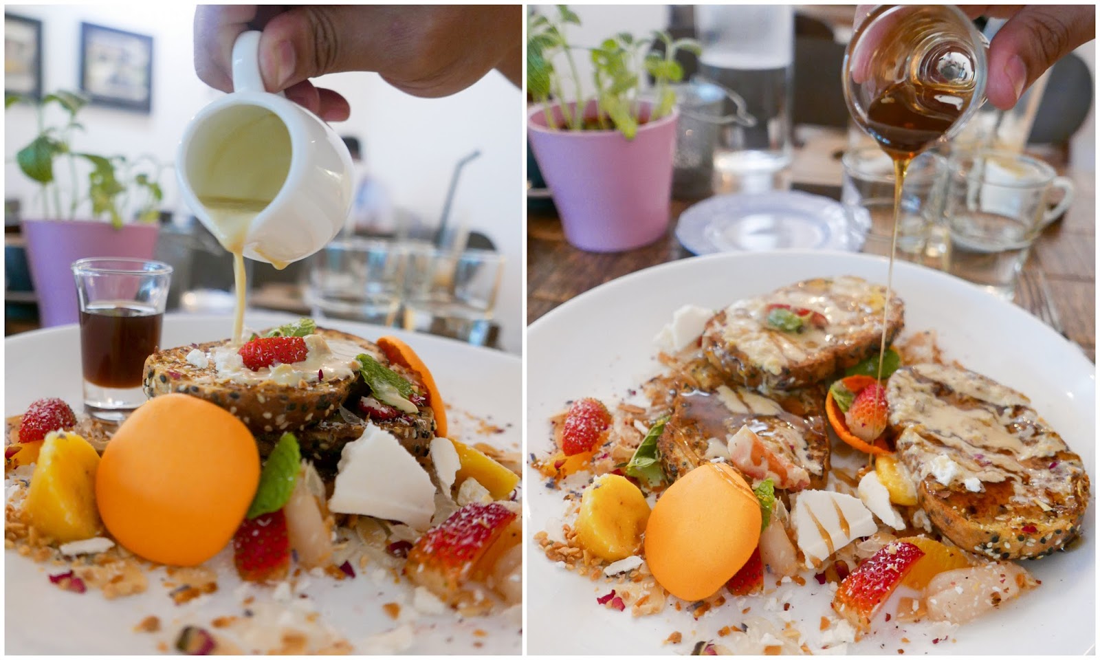 95 Degres does a distinctive French toast, a composition of whole-grain bread that retains its original nuances (not as sweet, eggy or custard-like as some versions), endowed with richness & character from a hodgepodge of strawberries, lychees, bananas, orange segments, almonds, wild honey & a unique caramel ginger syrup with a zing (RM15.90). In a duel of desserts, we'd be torn in deciding between the toast & the luscious white chocolate mousse, striped & elevated with pistachios & mango (RM12.90), a final testament to how 95 Degres succeeds in managing its intricate creations with flair to spare.