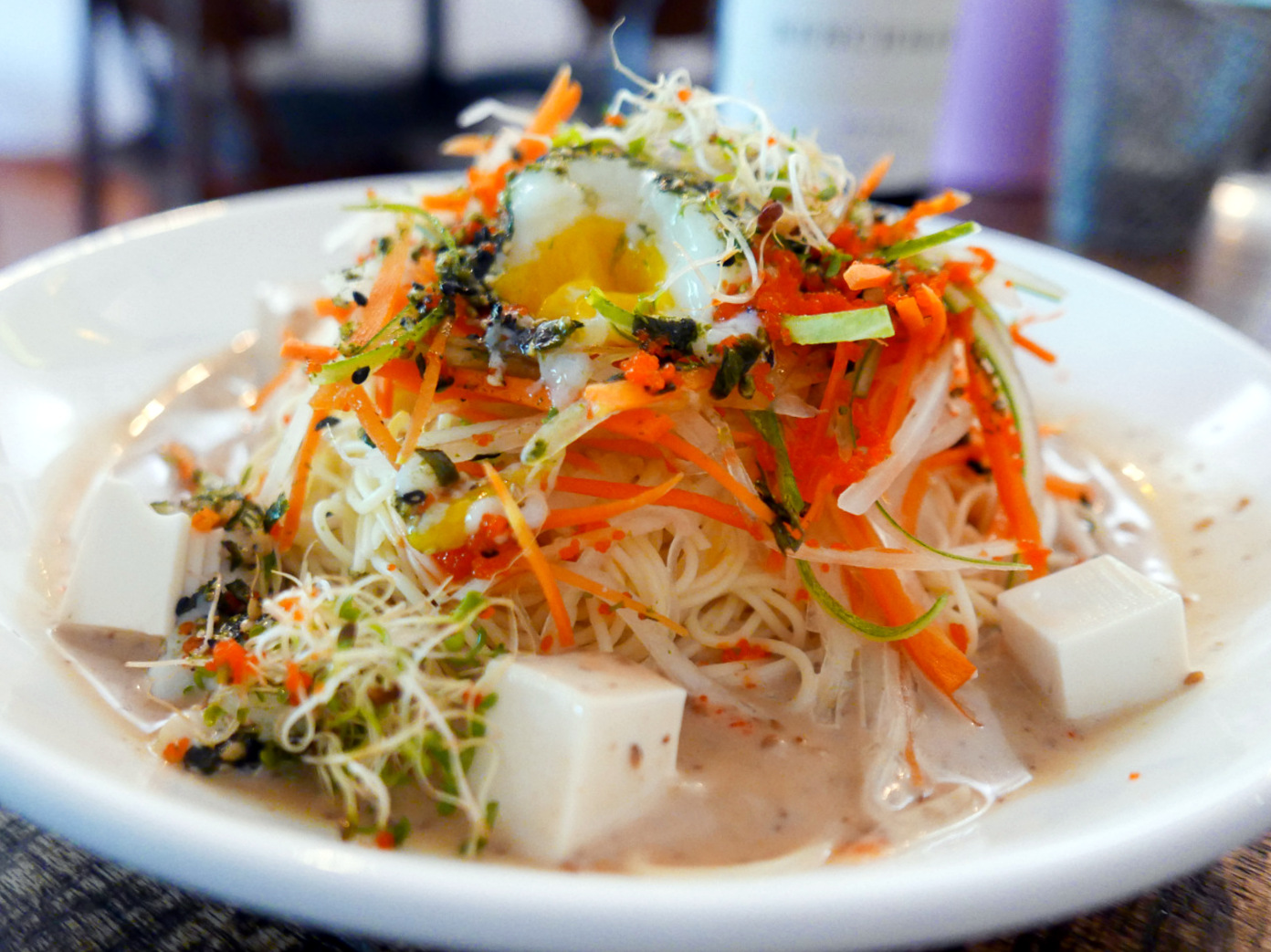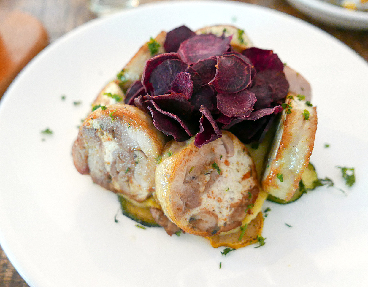 Vegetarians & carnivores are catered for alike - angel hair pasta is complemented by a mellow mix of soft & smooth tofu, bean sprouts, poached egg & tobiko, tossed with roasted sesame seeds in Japanese-inspired goma sauce (RM17.90); a hug on a plate, as wholesome & well-prepared as anything in this neighbourhood. It's a marvellous meatless meal, but if you must have your half-pound of flesh, the chicken roll (RM17.90) is memorably inventive, built with chicken leg meat, stuffed with chicken mousse, cushioned by a lovely mash of potato & pumpkin on a bed of zucchini, crowned with house-made sweet potato chips.