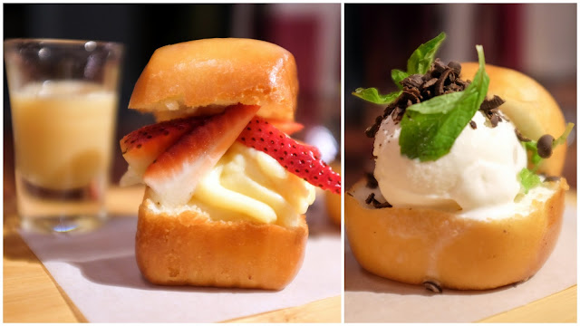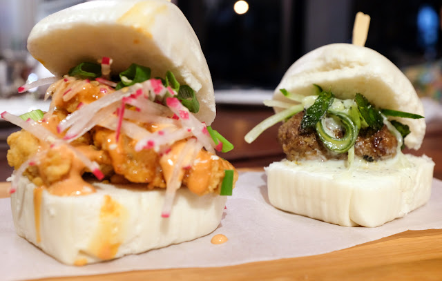 Cute creations - customers can choose from a diverse & distinctive selection of four savoury mantous and two sweet ones, all thickly stuffed, many showcasing a strong sense of contemporary, cross-border trendiness: Steamed mantou with fried chicken, red radish slaw & sriracha aioli; steamed mantou with lamb kofta, tzatziki sauce & fried mint; grilled mantou with beef patty, tomato salsa & fried quail egg; fried mantou with tempura fish, shaved cucumber & Oriental chilli sauce; fried mantou with custard, strawberries & a side of sweet condensed milk; & fried mantou with vanilla ice cream & shaved chocolate.
