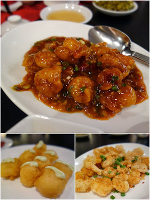 Prawns in garlic sauce, battered with wasabi mayo & deep-fried with spicy salt, mainly examples of irrefutable quantity over irresistible quality.