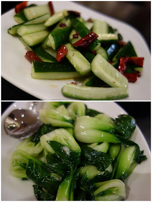 Marinated spicy chilled cucumber & stir-fried vegetables with garlic.