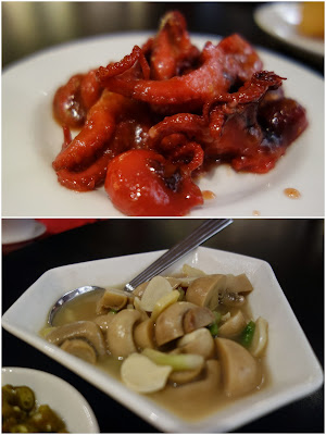 Seasoned baby octopus & ginger-sauce mushrooms. Service could be more cheerful; also note that dishes can sometimes take a lengthy time (up to half-an-hour) to emerge from the kitchen.