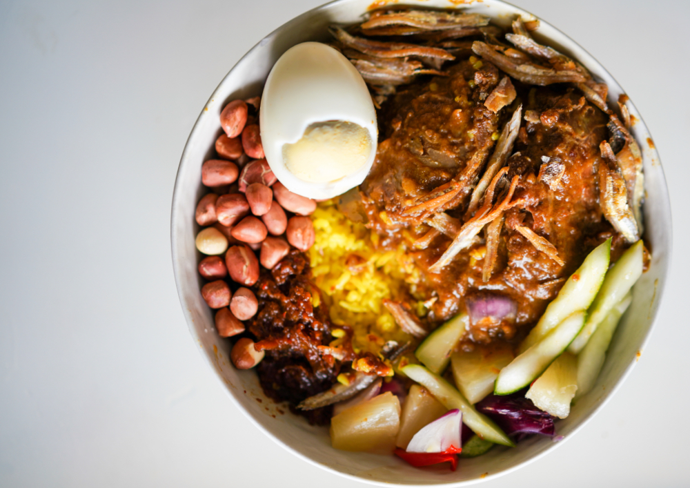 The ANTE team delivers a dish that's delicious in every respect, from the turmeric-tinged rice that's santan-strong, speckled with kerisik for a boost of coconut potency, to the thick, textured sambal and lively, lovely acar of cucumber, onions and pineapple.