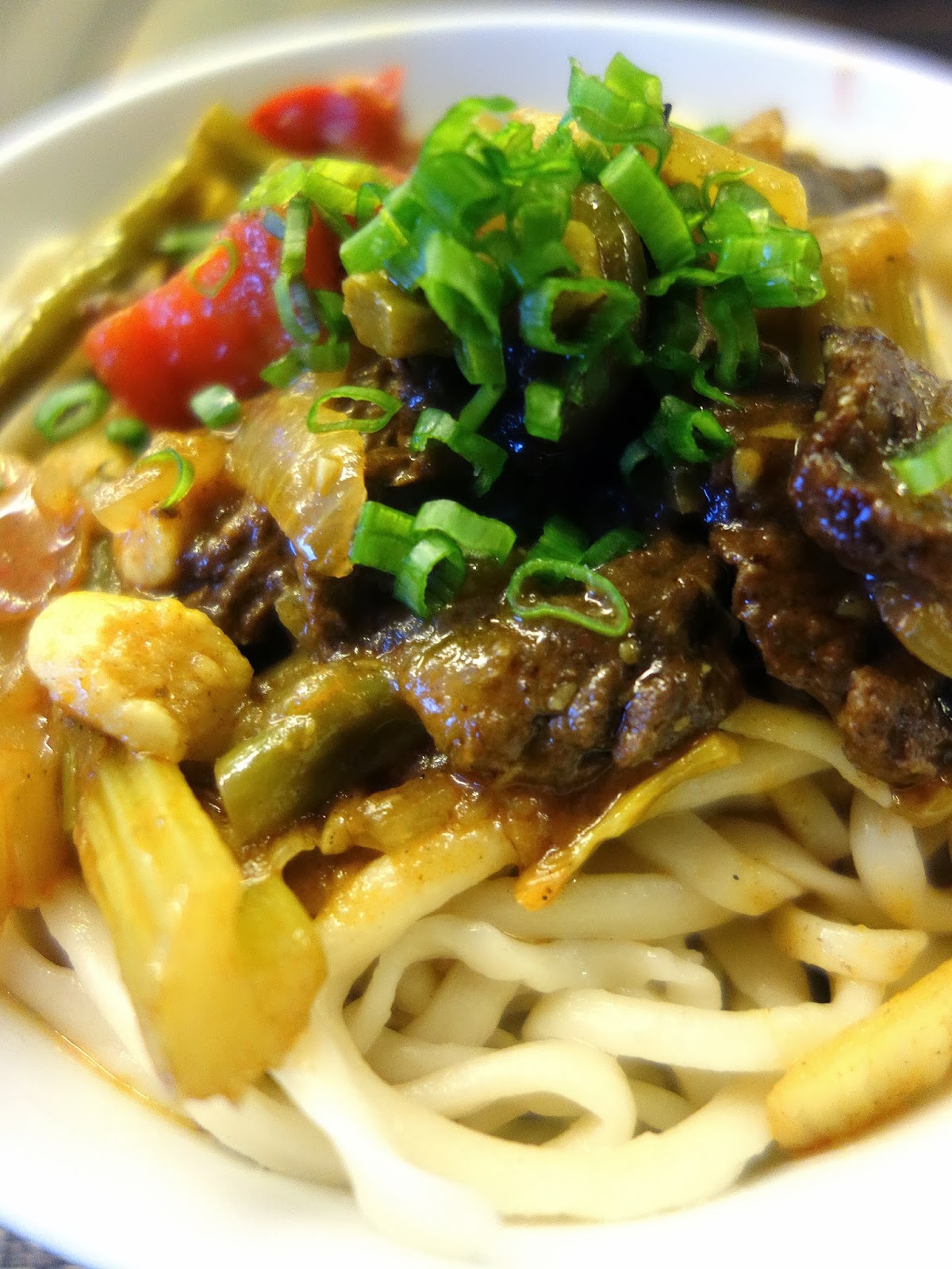 Uigur Lagman (RM7 for a half-portion). Hand-stretched noodles with beef, radish, carrots, kidney beans, eggplant & bell peppers. Comfort cooking, served hot & hearty, potentially perfect for wintry weather.